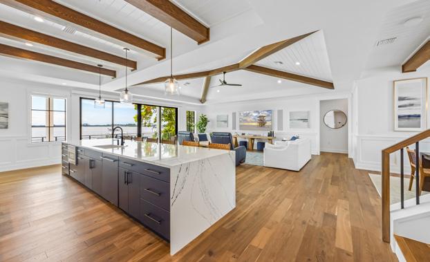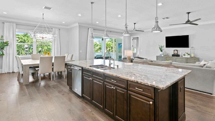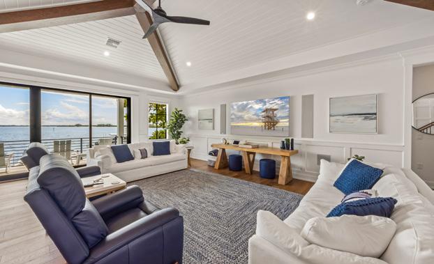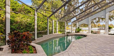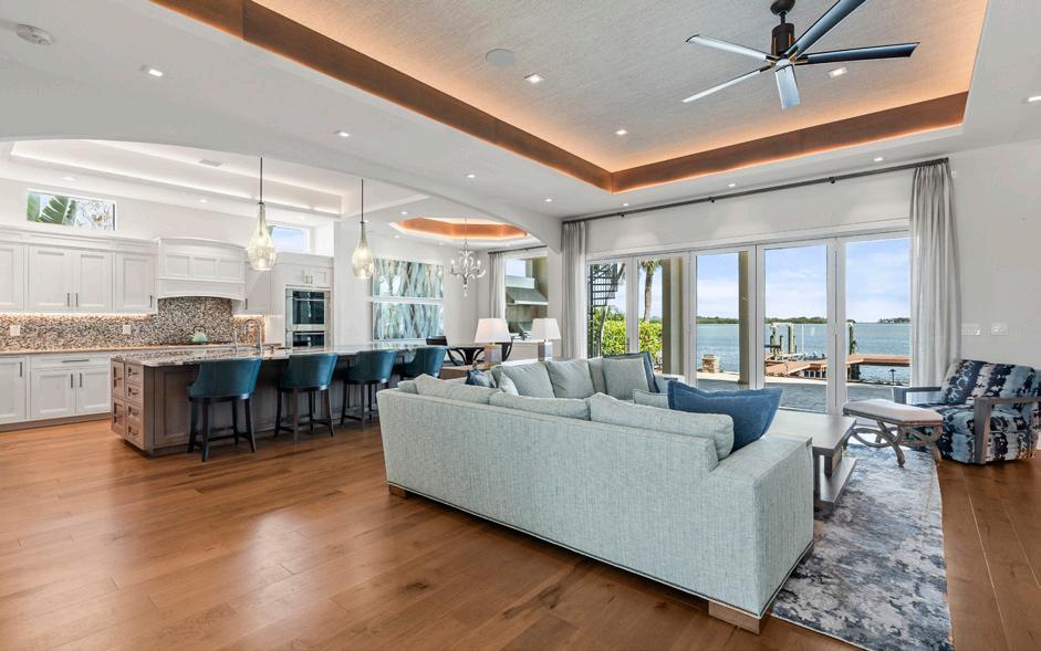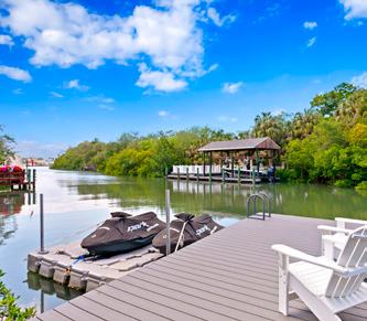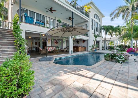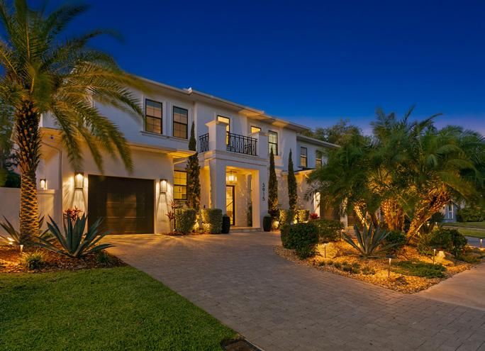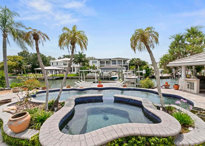 The home known as “VILLA FLORENTINA” is located on a rare 0.41 acre DOUBLE LOT with 142 feet of protected waterfront. This four-bedroom, five bath residence spans 5,378 square feet of living space and features original hardwood floors, three fireplaces, tall arched walkways and windows, exquisite hand-painted Italian-inspired interiors, attached one-car garage and separate twocar garage and workspace, heated pool with a waterslide, dock with a boat lift, and a vast resort-style backyard with tropical landscaping and numerous decks for entertaining.