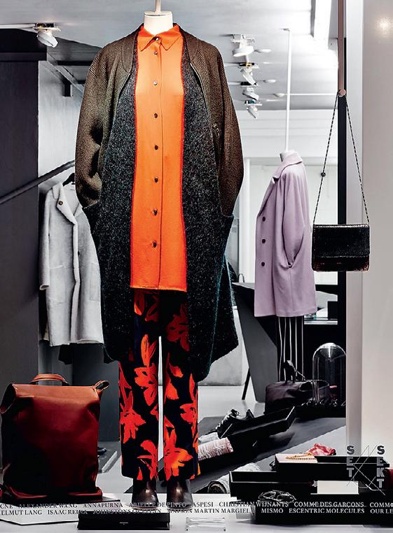 Women & Men: Acne Studios, A Kind of Guise, Agmes, ATP, Blossom, Calcaterra, Christian Wijnants, Comme des Garçons, Common Projects, Completedworks, Dries van Noten, Dušan, Escentric Molecules, Extreme Cashmere, Hereu, Isaac Reina, Jeanerica, Julia Jentzsch, Leimaire, Le 17 Septembre, Lido, Pleats Please Issey Miyake, Sofie D’Hoore, Stiebich & Rieth, Studio Nicolson, Stutterheim, Toteme, Roberto Collina, Schnayderman’s, Stephan Schneider, Still By Hand