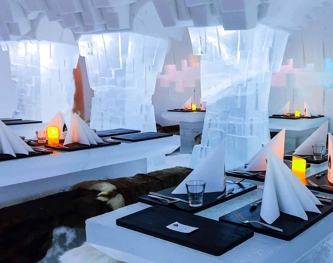 IInstead of constructing a large hotel building, the designers placed tion units on a steep natural hillside, the ambiance of which perfectly of the destination and brings the Arctic nature closer to its guests. located on the Arctic Circle,