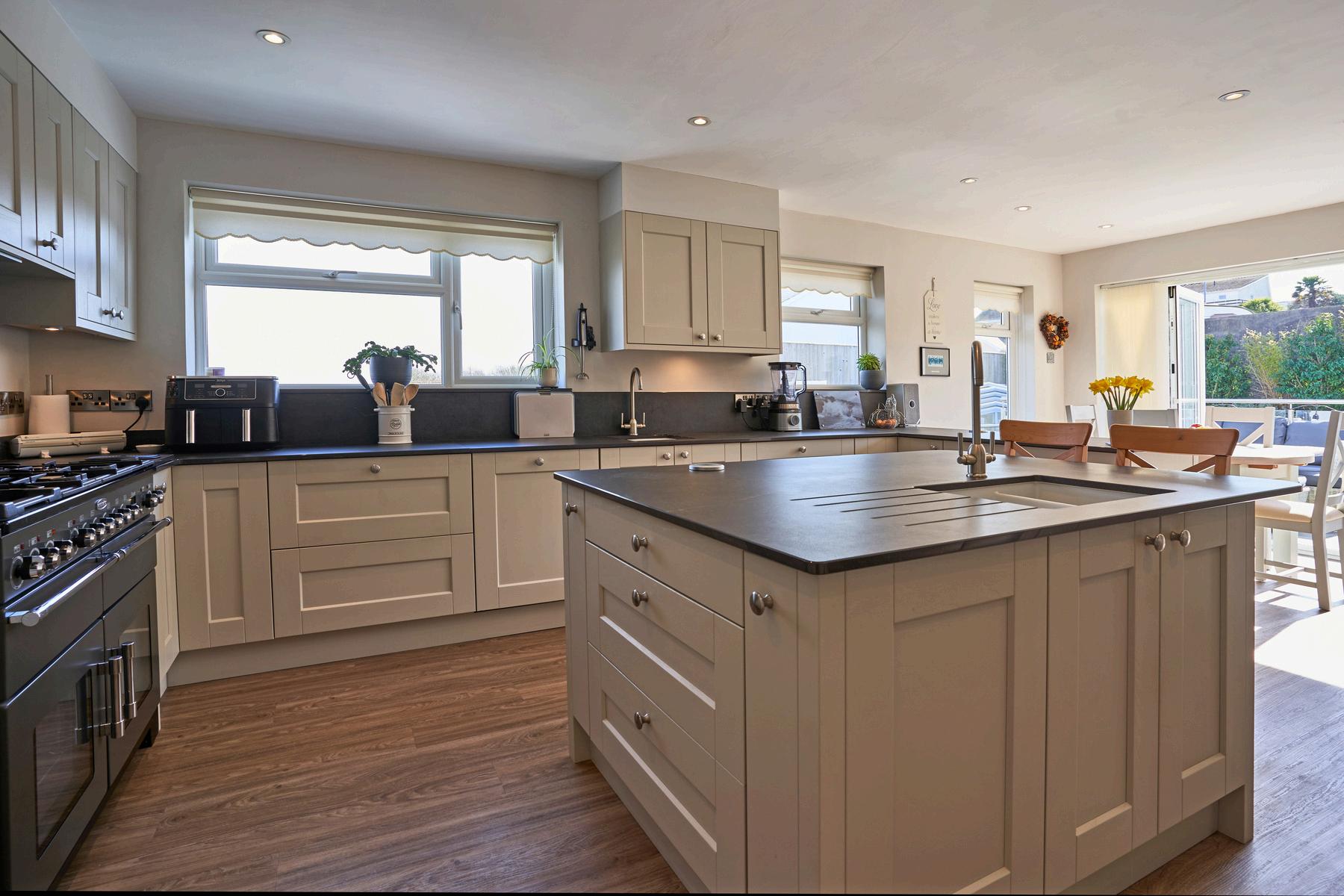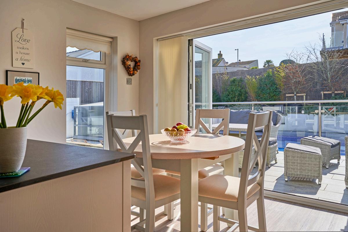 Dining and Breakfast Kitchen - 7.13m x 4.62m (23’5 × 15’ 2”) - Bi-fold doors lead our to the sunny patio with access to the pool