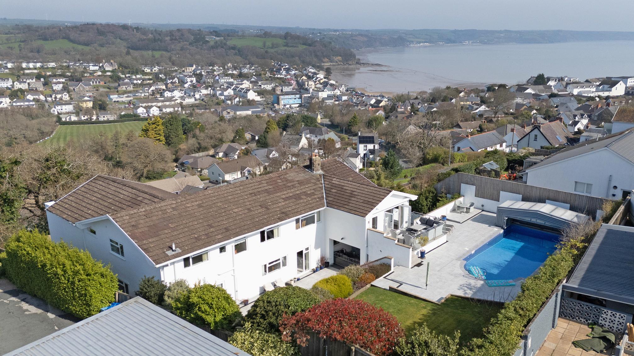 Perched majestically on the prestigious Sandy Hill Road, this isn't merely a residence; it is a grandstand to the ever-changing theatre of Saundersfoot Bay. From its commanding position, the home draws the outside in, tracking the sun from its morning dance across the water to its final glow over the distant Preseli Hills. Every inch of this substantial home has been curated for a life of effortless luxury, where architectural scale meets the warmth of bespoke local craftsmanship.