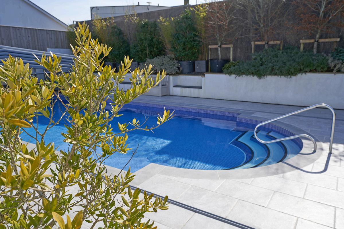 Pool 4.5m wide x 10.8m (14’ 9” x 35”5”) - With steps leading into the shallow end starting at approx 0.75m. There’s a gentle slope for about four metres then a steeper slope into the deep end. The deep end is approx 1.8m.