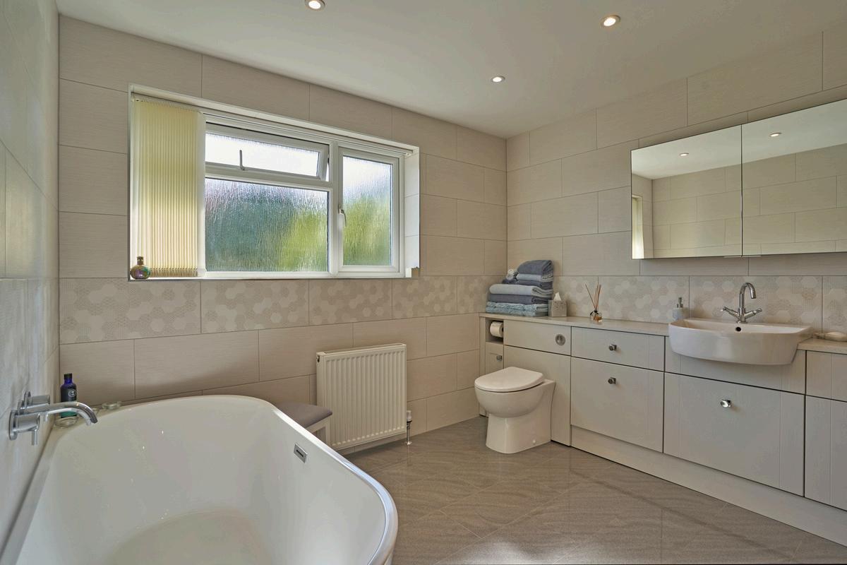 Bathroom - 3.76m x 2.97m (12’4” x 9’9”) - With bath and shower, low level wc, bidet, large vanity wash hand basin, under floor heating.