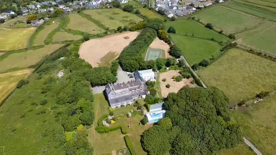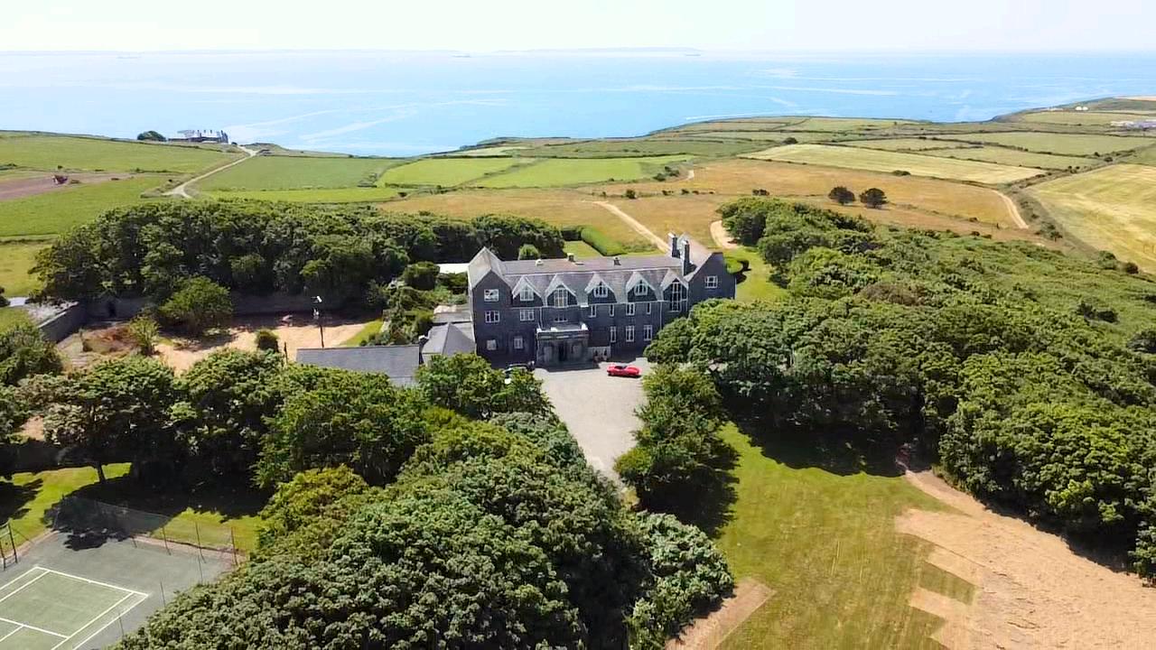A stunning Grade II Listed Building, historically, one of Pembrokeshire’s finest and most exclusive hotels providing a total of 33 bedrooms including detached staff quarters, holiday cottage, outdoor covered heated swimming pool (requiring TLC), all weather tennis courts, mature landscaped gardens and Helipad sitting in 15 acres of its own coastal facing land and with the most spectacular views south over St Brides Bay.
