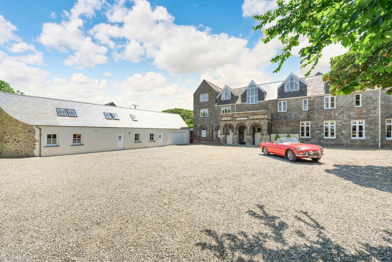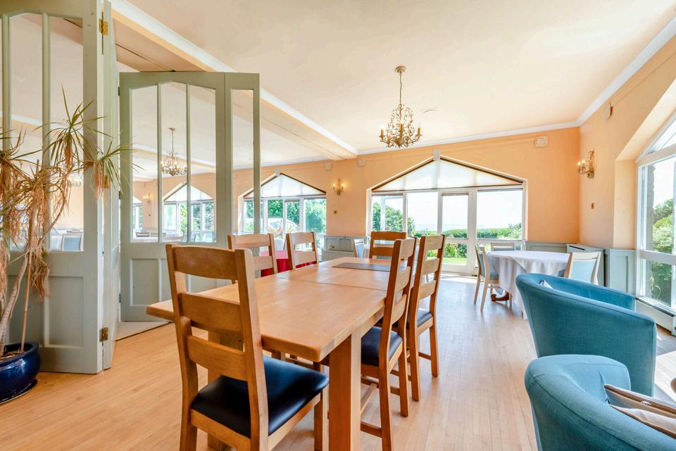 Presenting from a winding, tree lined country driveway you arrive at the stunning 19th Century St David’s Court; You are welcomed by beautiful entrance hallways inviting you further in through the West Porch to the Public Bar with real fire and hand painted tiles, original wooden shutters, high ceilings and large bar area, through to the spectacular, intricately carved, Oak staircase leading up to the glorious bedrooms. Into the Drawing Room which presents as light and airy with wonderful fireplaces, hand painted tiles, large windows welcoming the natural light, through into the magnificent dining / function room with Sycamore Dance floor, the ‘Sea View Restaurant’ is a magnificent space with full glass doors and windows encapsulating and framing the dramatic, wondrous views over St Brides Bay, a spectacular fireplace with hand painted tiles, ample space for marquees on the lawn directly from this room.