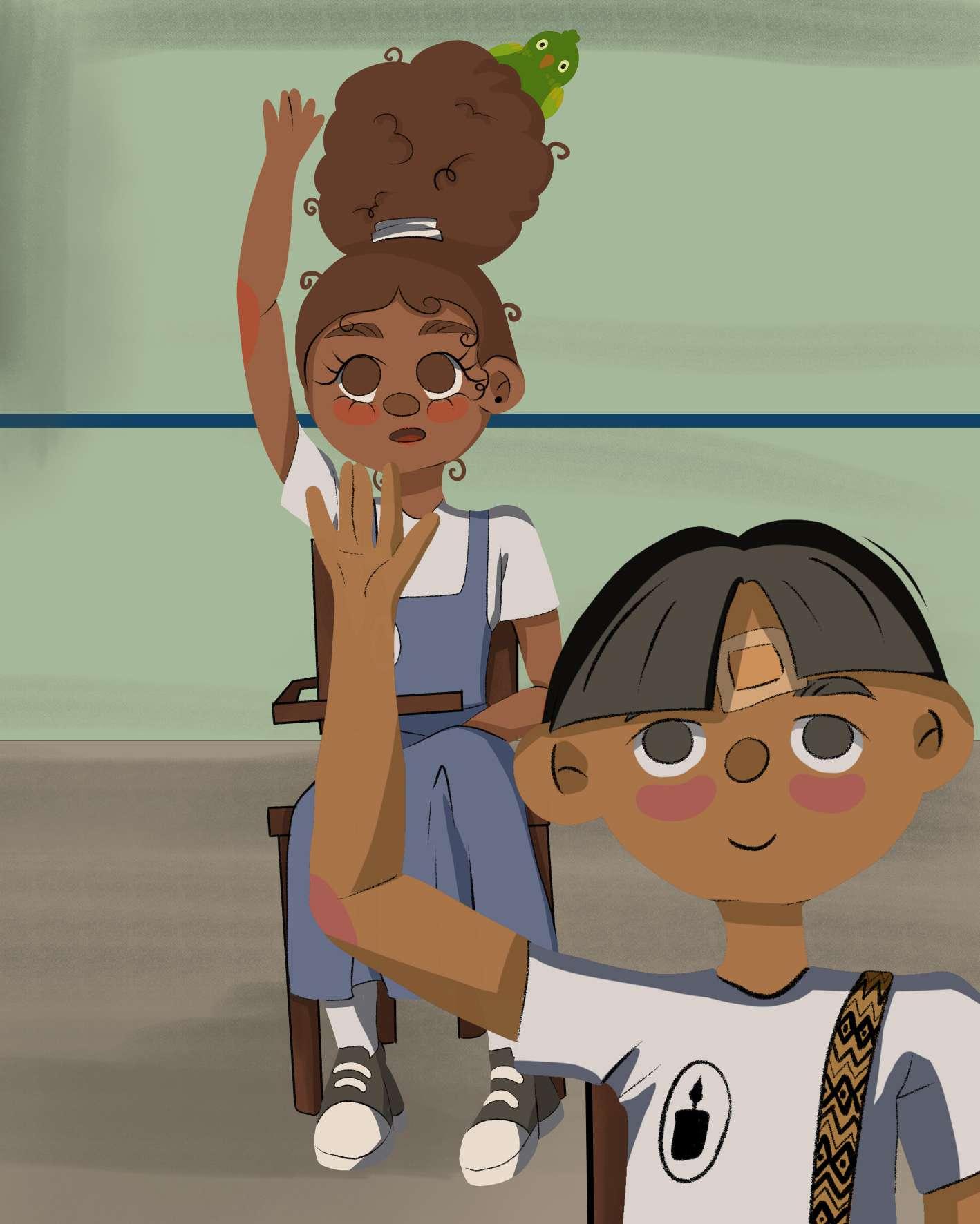 A la mañana siguiente, Lucía nota que hay un niño nuevo en su salón de clase. Se llama Toño y es un niño muy amable. Al verlo jugar con sus compañeros en el recreo piensa: - ¡Quiero que Toño sea mi amigo!Por lo que se propone en encontrar la forma de agradarle a Toño y así poder ser su amiga.