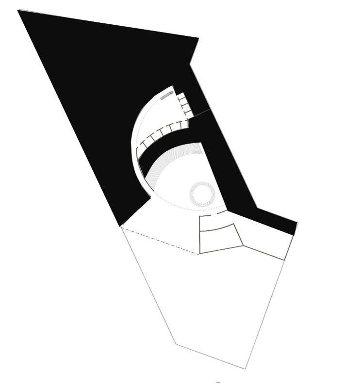 LAFORMADE EMPLAZAR ELTERRENO ,Conceptual la idea de emerger de la tierra ,generando un perfil a manera de portada,este vacío condicionado,permite tener la visual de la huaca desde la plaza .asi mismo el techo se utiliza como quinta fachada,brindándole espacio público permeable al lugar. ..