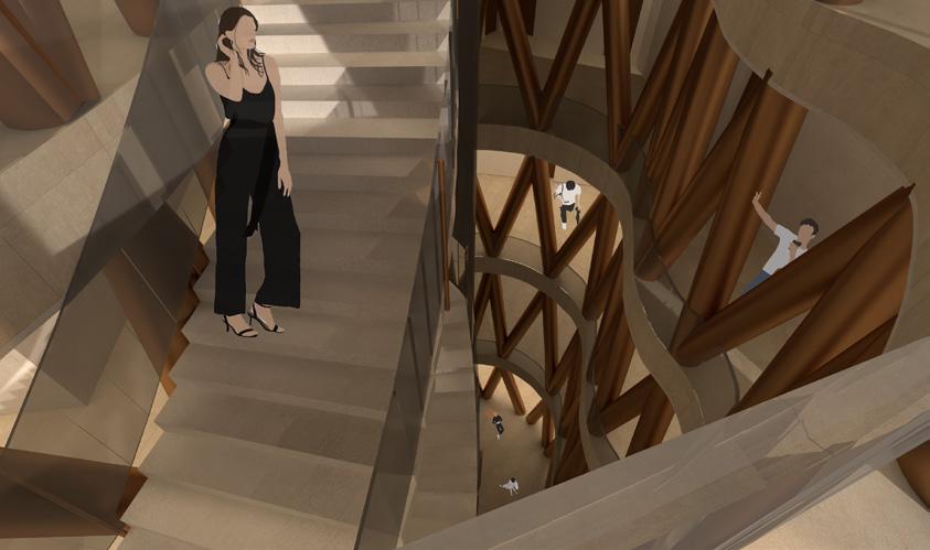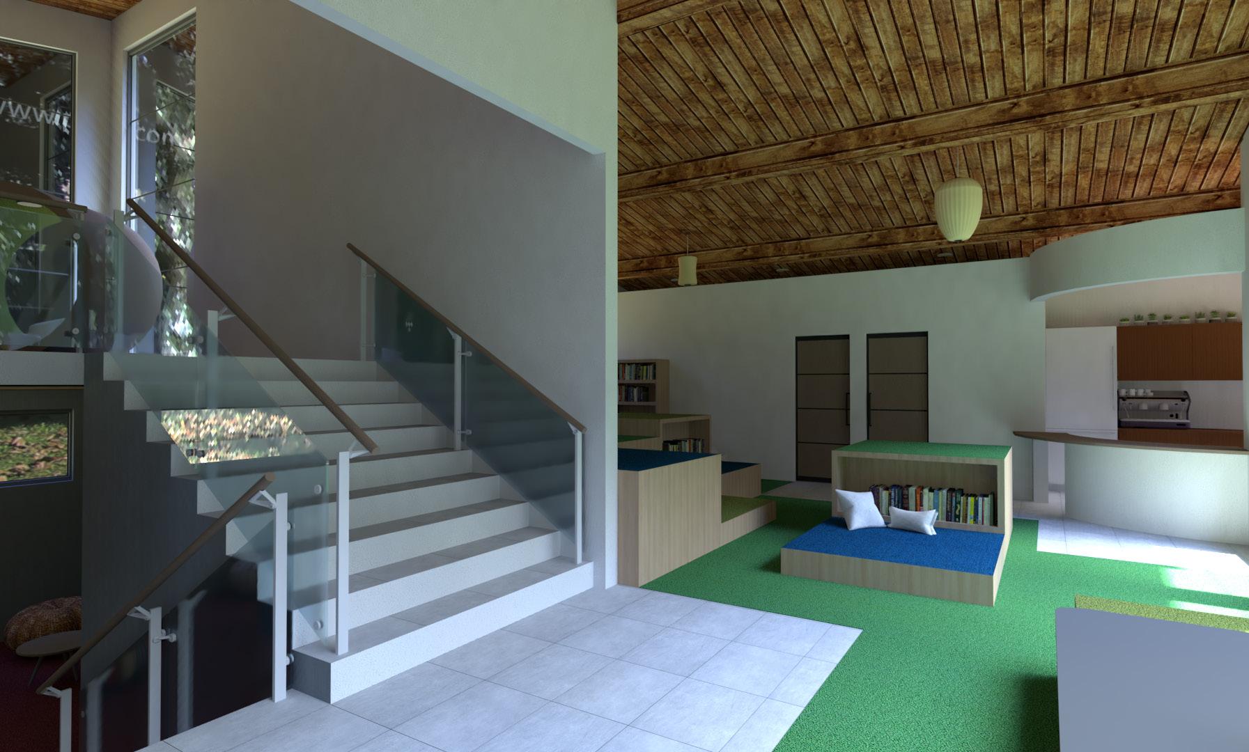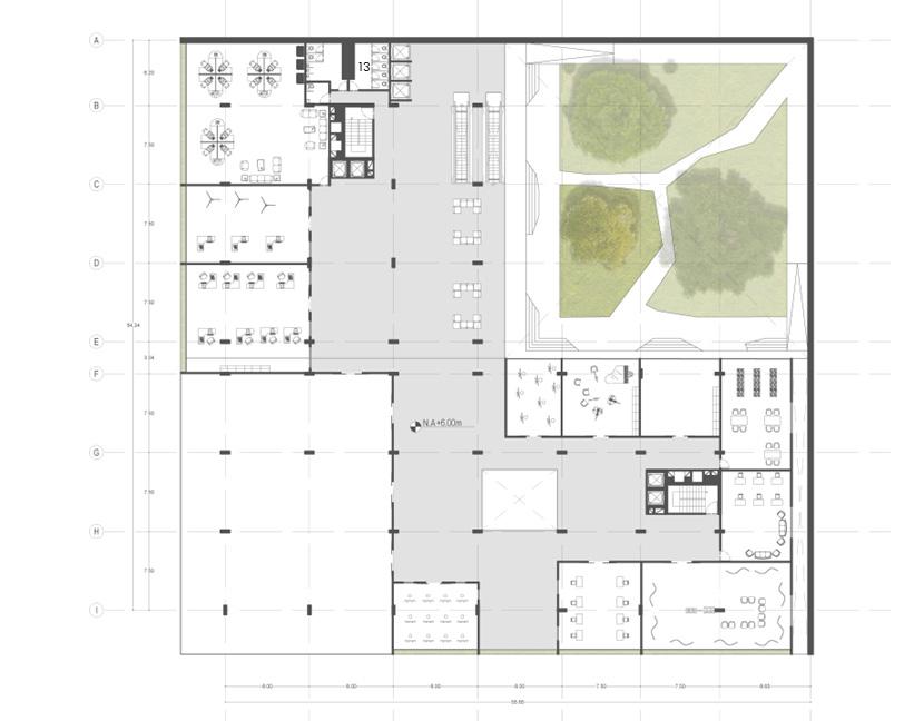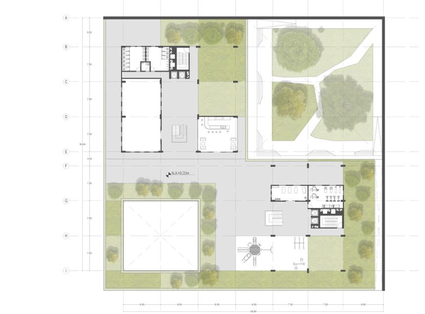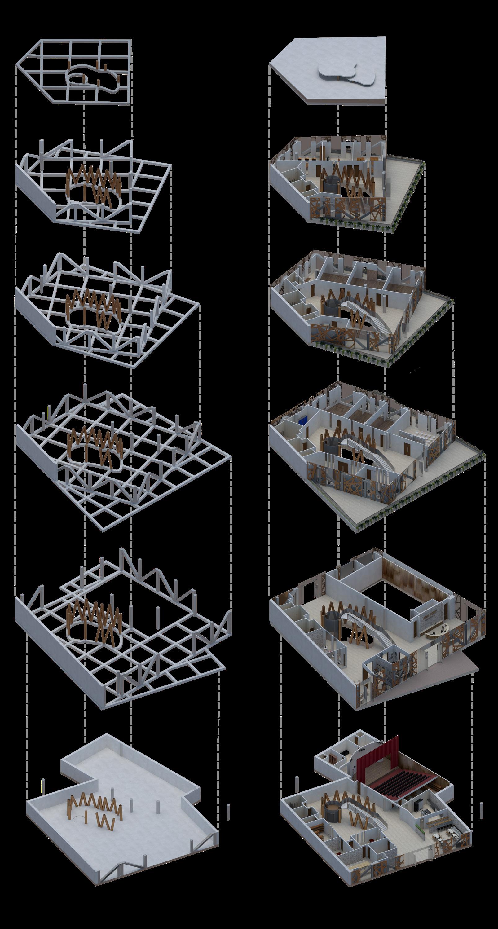 Además de ellos, el proyecto trata de articular todos los niveles a traves de vanos para dar una armonía y continuidad, pero sobre todo de permitir la mayor iluminación ya que debido a que la mitad el edificio esta semi-soterrado, esta es muy limitada.