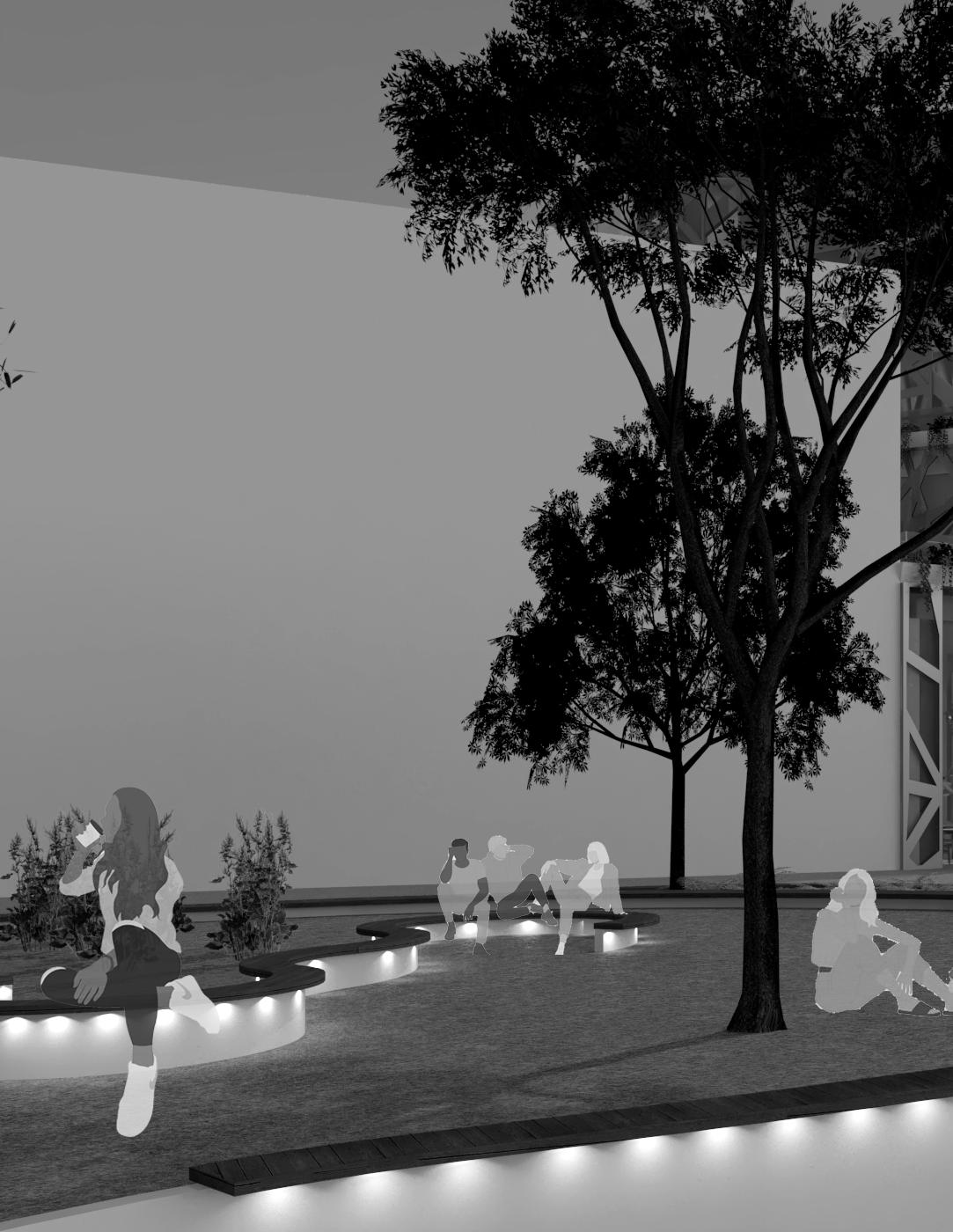 Este capitulo compila la información obtenida de un ejercicio de representación, pero del cual se pretende destacar el diseño del espacio, ya que fue diseñado propio para el ejercicio; la primicia de este constaba de un equipamiento de estudio o descanso que pudiera ser albergado dentro de las instalaciones de la Universidad Nacional de Colombia, sede Medellín. Entes equipamiento, que recipe por nombre “Estancia de descanso En El Bosque”, este espacio se encuentra ubicado a espaldas del bloque 21, y se encuentra en medio de una gran zona arbórea que genera un entorno de tranquilidad para los usuarios; el proyecto consta de 3 estancias bien diferenciadas ubicadas a diferentes niveles: una estancia de relajación, una del compartir y una de estudio. Esto permite que existe un gran dinamismo que se adapta a las necesidades de cada usuario, ademas tambien se cuenta con otros espacios como una cafetería y su plazoleta, cuarto útil, bodegas y cuarto técnico.