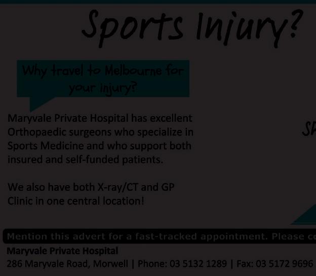 “I wentfor the ruck againstFoaty (Woodside ruckman Ryan Foat), it feltlike abrick had crushed my hand when Ihit the ball, that’s when Iknew something was up,” he recalled.