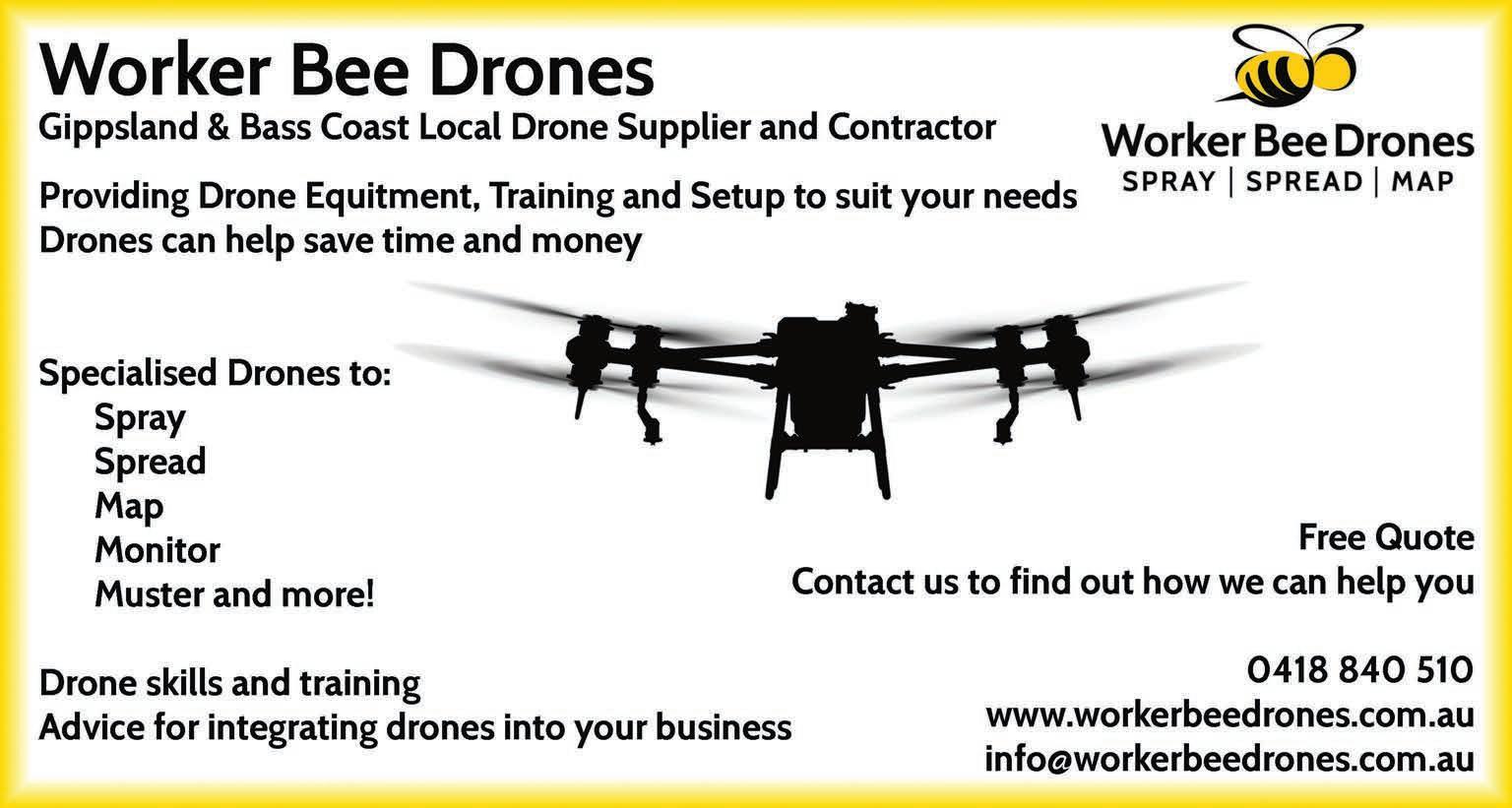 Worker Bee Dr ones operates acr oss Victoria,withafocus onBassCoast, Strzelecki, Mt Worth and broader Gippsland.