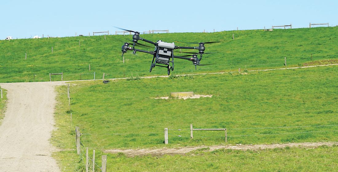 “Whereas we come in at about two metres above, we have very precise droplet-size control; thereisthe downforce of the props, so the drone sits over it, it jets spray straight down -very precise application and the prop-wash flips the plants round asthe spray comes down, so it thoroughly covers thetops andbottoms of the leaves. The kill rate is amazingly good.”