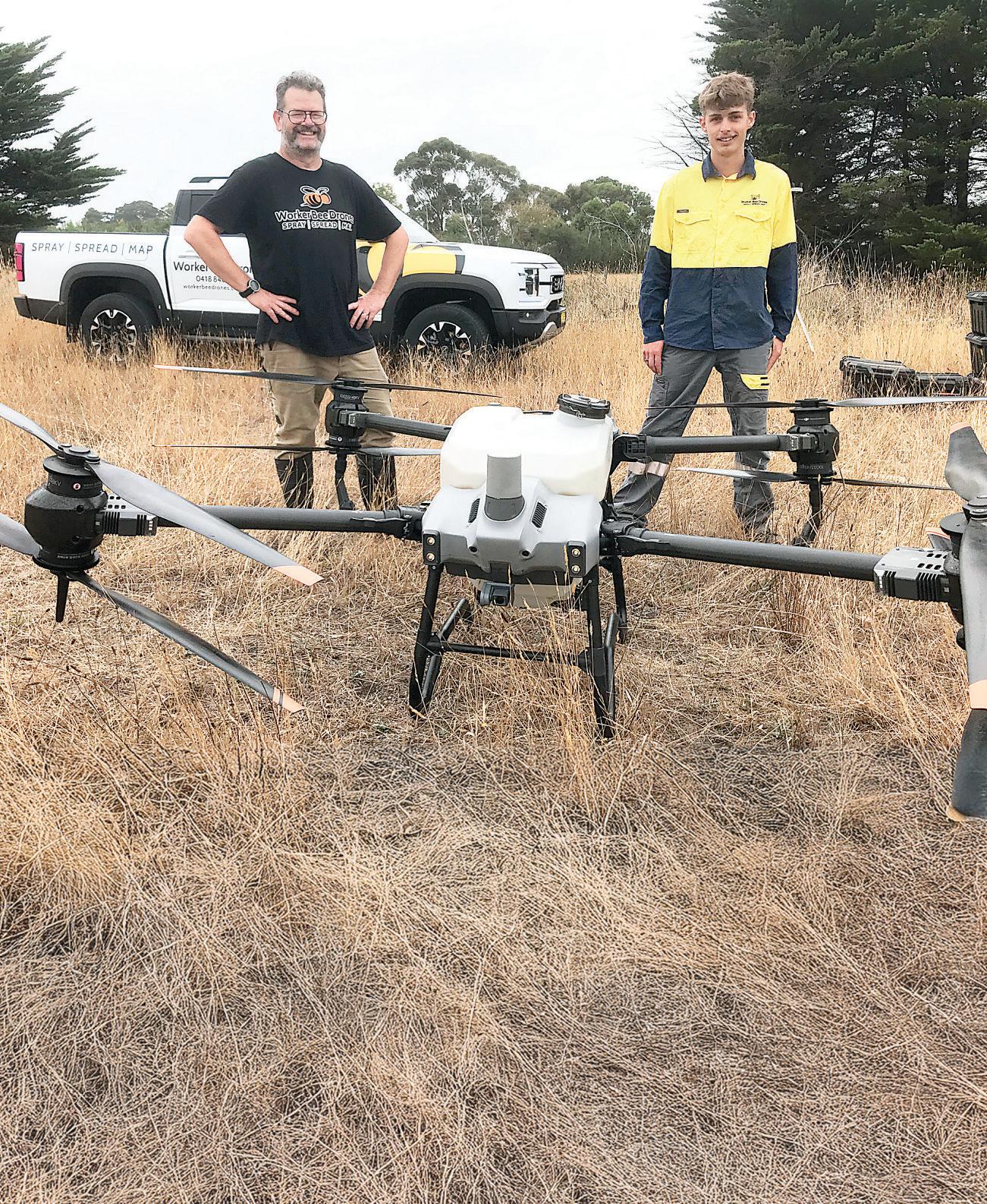 “About two-and-a-half years ago, Idecided Iwanted achange -agdrones werestarting to get good and useful -they had been hit and missbeforethat. Iwent out on alimb, investeda bit of money, bought myself a set-up, and got going by wordofmouth in Bass Coast and Gippsland, mainly in the Wonthaggi area,” he said.