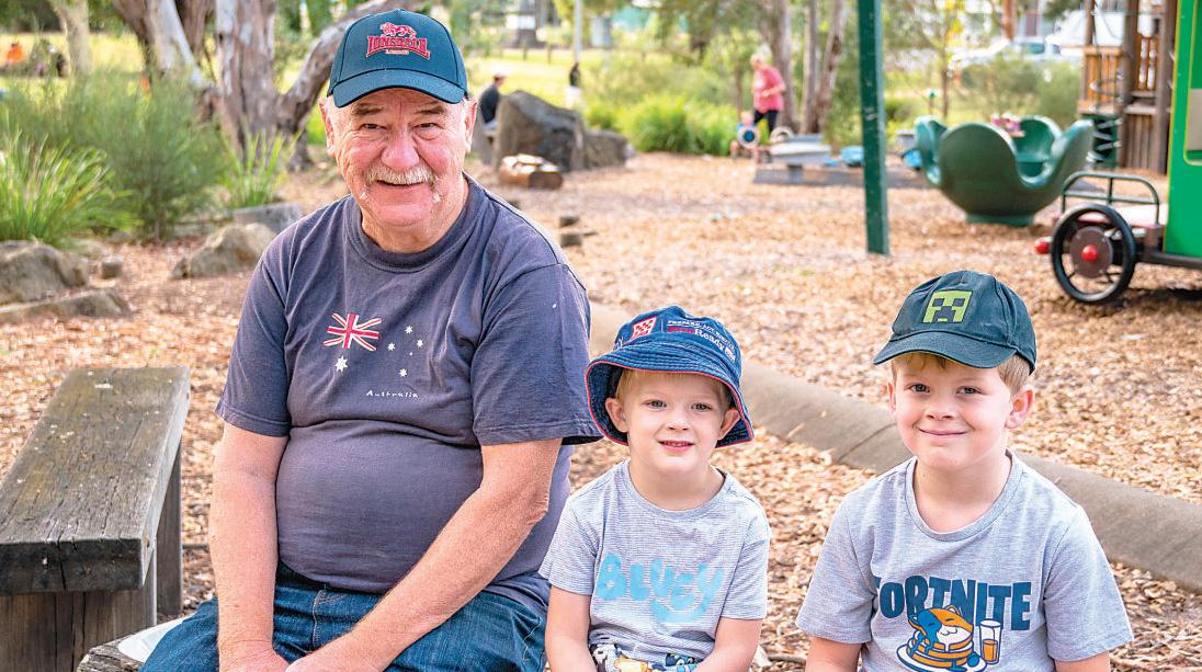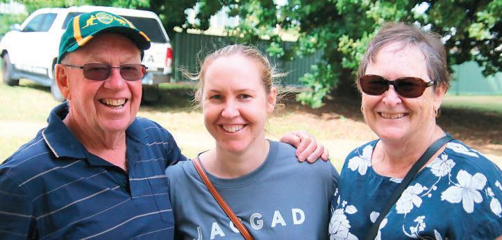 Wellington Shire councillor Carolyn Crossley with Rosedale localsEddieand GerardatPrince St Reserve on AustraliaDay.