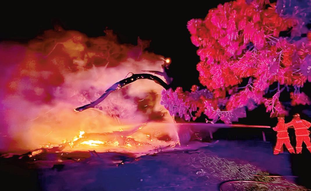 Thefirehad spread afteranunattended burn pileescaped and seta nearbytreeonfire about 10pm, and no one washomeatthe property
