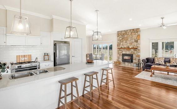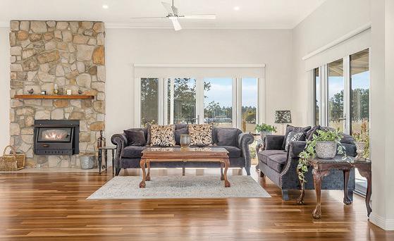 Comfortable CountryTimber Home withdouble glazing, split system heating/ cooling, wood heater and a6.6kW solar system forenergy efficiency.Three Spacious Bedrooms plus Study,2bathrooms and alarge countrystyle kitchen. Substantial Shedding including 3-bay machineryshed and 2-baycarport. BoreWater Supply, numerous water tanks and alarge picturesque dam.