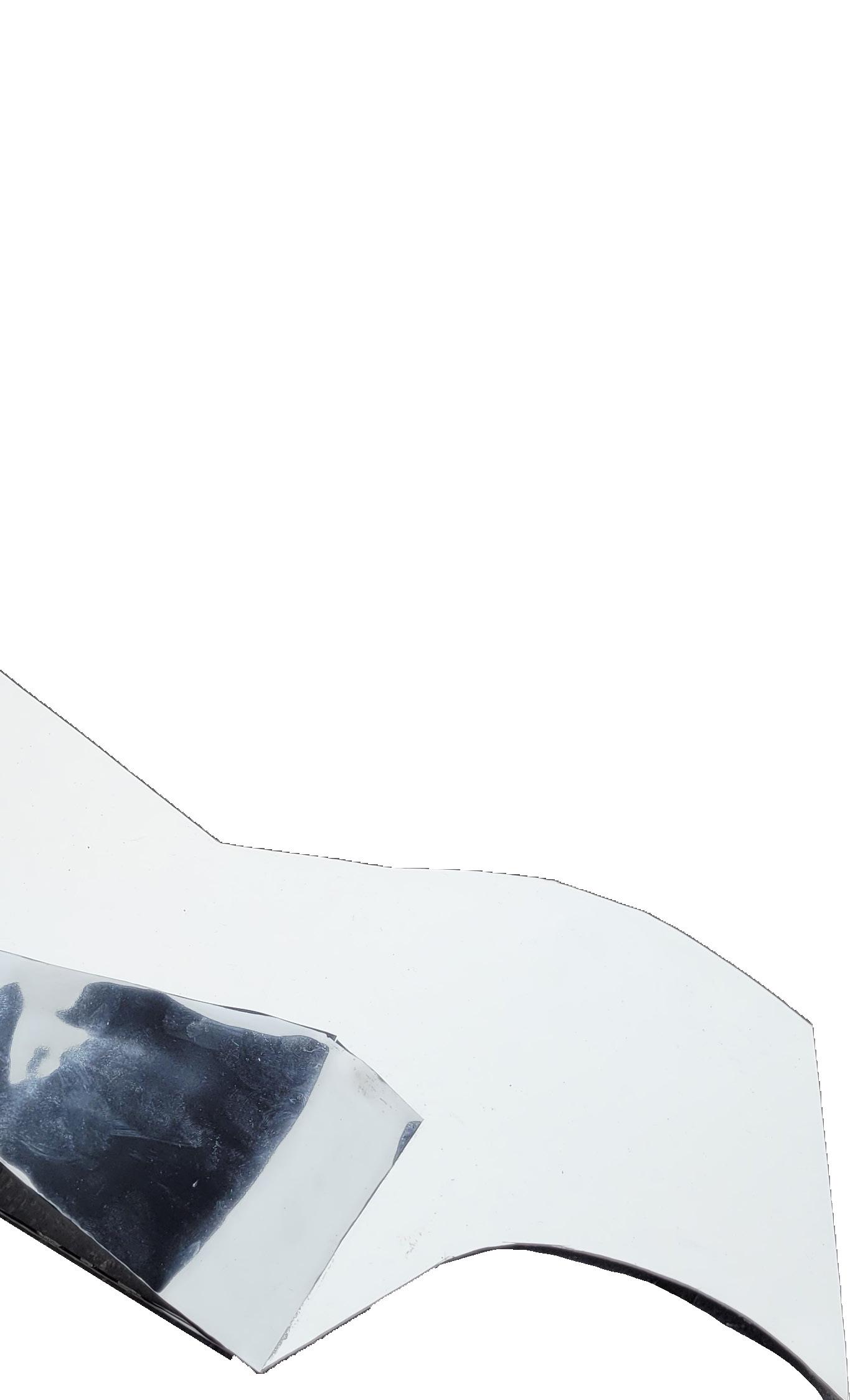 I find it interesting to explore how you can design spaces for multiple uses and make them into spaces for people to meet, inspire, re-energise and increase social awareness in an increasingly individualist society. Skateboarding, is particularly interesting here because skaters have a completely different way of perceiving space. Designing a skateboard-friendly sculpture creates a dynamic and new perspective on possible movement through a portal or an installation. The entire sculpture is made of reflective stainless steel, which visually echoes its surroundings. The geometric lighting is in unison with this concept.