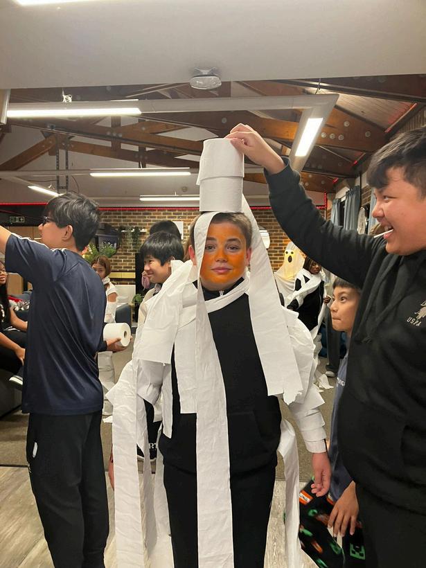 ⼗⽉的万圣节庆祝活动,为我们的孩⼦们带来了 种令⼈毛⻣悚然的氛围。我们其中 所学校倾尽全⼒,为低年级学⽣举办了 场“不 给糖就捣蛋”的晚会,把走廊变成了充满糖果和惊喜的⻤屋。与此同时,我们欢聚 堂,庆祝 个欢乐而多彩的德赛节,庆祝⽂化、传 统和团聚。