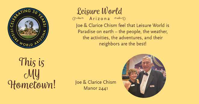 The speed limit on Leisure World streets is 25 mph. No passing. Be vigilant at crosswalks! MAY 2023 | www.lwca.com MAY HIGHLIGHTS: Room Reservation Fees ............. A3 I Remember Mama .................. A10 The Western Savings Era .......... A14 Thank You Support Staff .......... A18 Family Owned & Operated A ordable Quality Dentistry Since 1924 LICENSED DENTURIST & ON-SITE DENTURE LAB EAST LOCATION 4830 E. MAIN ST • (480) 832-3335 WEST LOCATION 2415 W. MAIN ST • (480) 968-7777 WWW.DRPEASE.COM | DR.ERIKPEASE@GMAIL.COM SEE FLYER INSERT FOR MORE INFO AND COUPONS! Blast from the Past TV Moms Who Shaped Our Culture.