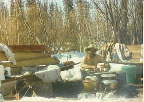 We went down to Pelly River and found the woodlot. We then proceeded to do a whole lot of firsts for us. We had never set up a canvas wall tent so that was one of our first firsts. Actually, it was kind of a nice set up. We put plywood down for the floor, and built a rack up off the floor for our sleeping bags. We even had a small wood stove for the tent as the tent was designed for a stove stack to go through the roof. The bride even had the use of a Coleman stove, but we didn’t use it very much as we only had one 20 lb propane tank and we would have spent too much