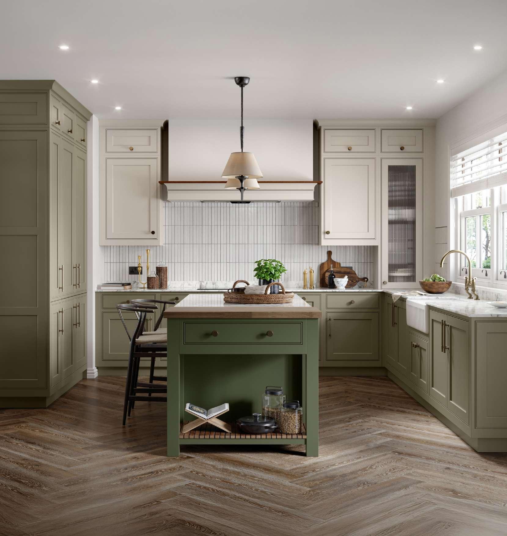 Our Powder and parchment paint colours bring a calm, confident energy to our In Frame kitchen design. Powder delivers a soft, contemporary green-grey that feels fresh without trying too hard, while Parchment’s warm neutral tone keeps the space grounded and timeless. Together they strike a balance between cool modernity and classic comfort—perfect for homeowners looking to create a kitchen that feels both current and effortlessly welcoming.