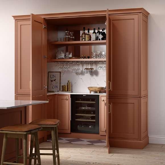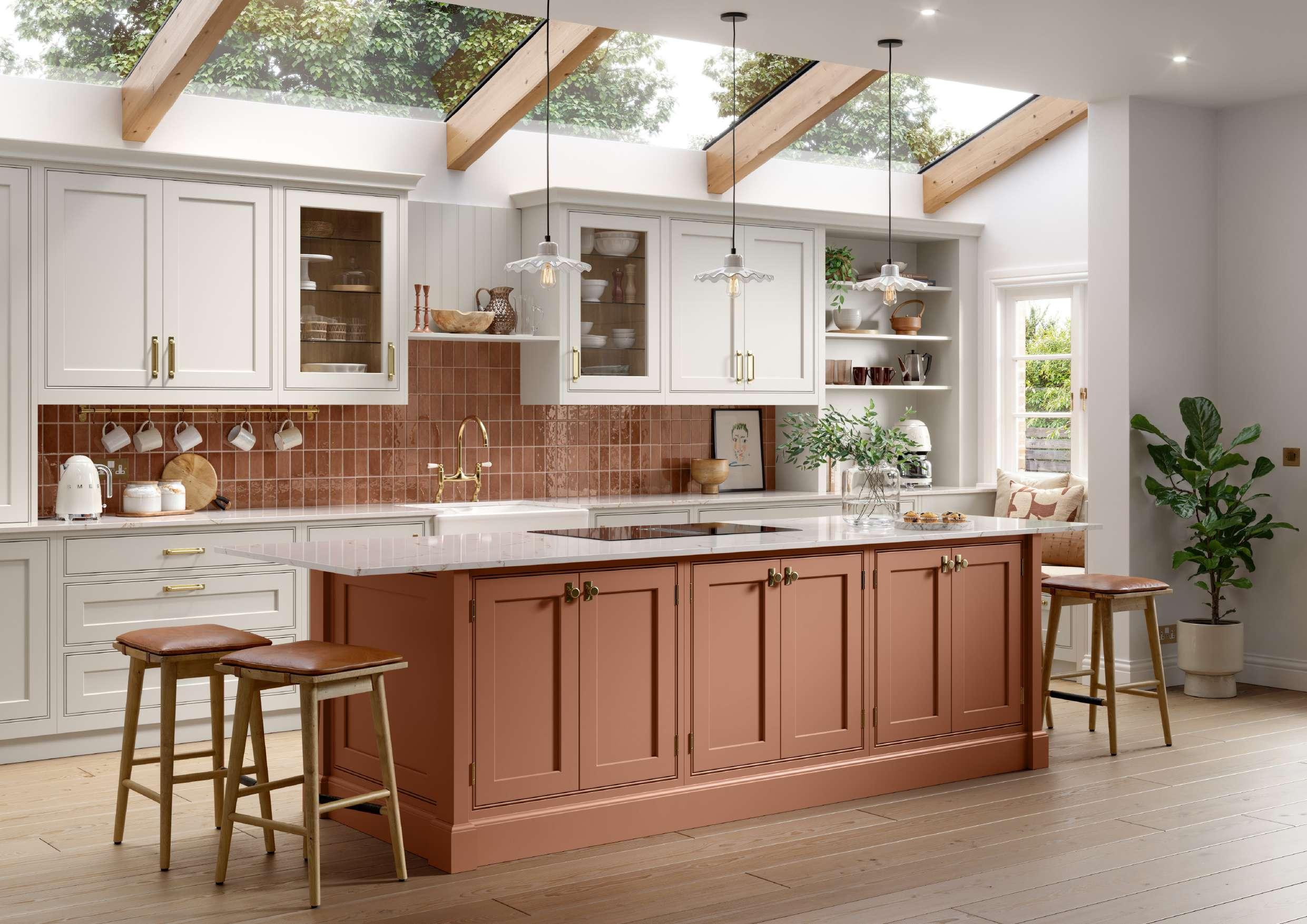 Using the paint shades of Limestone and Sienna bring a confident, design-focused warmth to the In Frame kitchen design. Limestone’s soft, understated neutrality keeps the space light and refined, while Sienna injects a hit of earthy, modern colour that feels both inviting and on-trend. Together they strike a fresh balance of calm and character—perfect for anyone looking to create an In Frame kitchen that feels contemporary, expressive and effortlessly welcoming.
