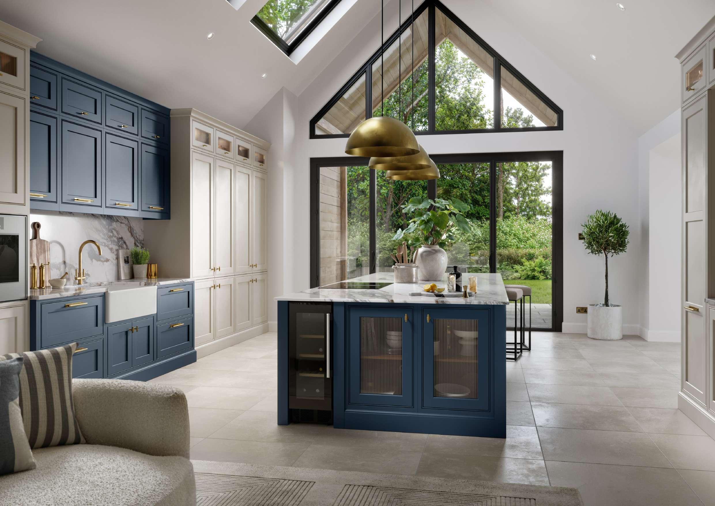 Cobalt and Limestone bring a sharp, design-led edge to our In Frame kitchen. Cobalt’s bold, inky blue delivers instant impact, while Limestone softens the palette with its understated, warm neutrality. Together they hit the spot between expressive colour and everyday usability. Paired with brushed brass and marble textures, this duo reflects a growing shift towards kitchens that feel curated, confident and ready to impress without overwhelming the space.