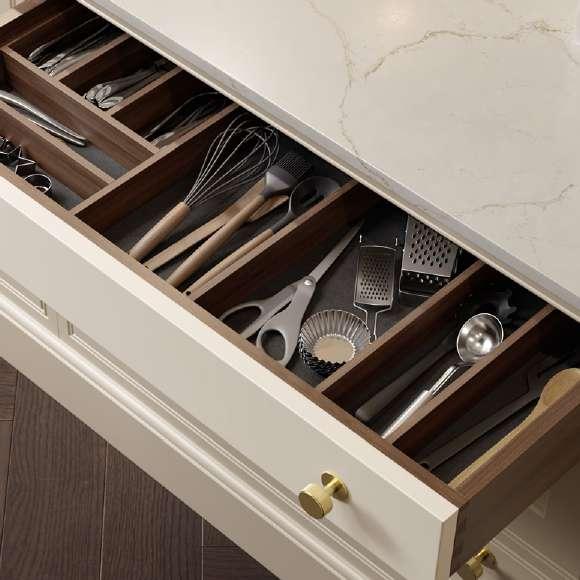• Glued and dowelled cabinets in Walnut & Oak with coordinating drawer boxes as standard