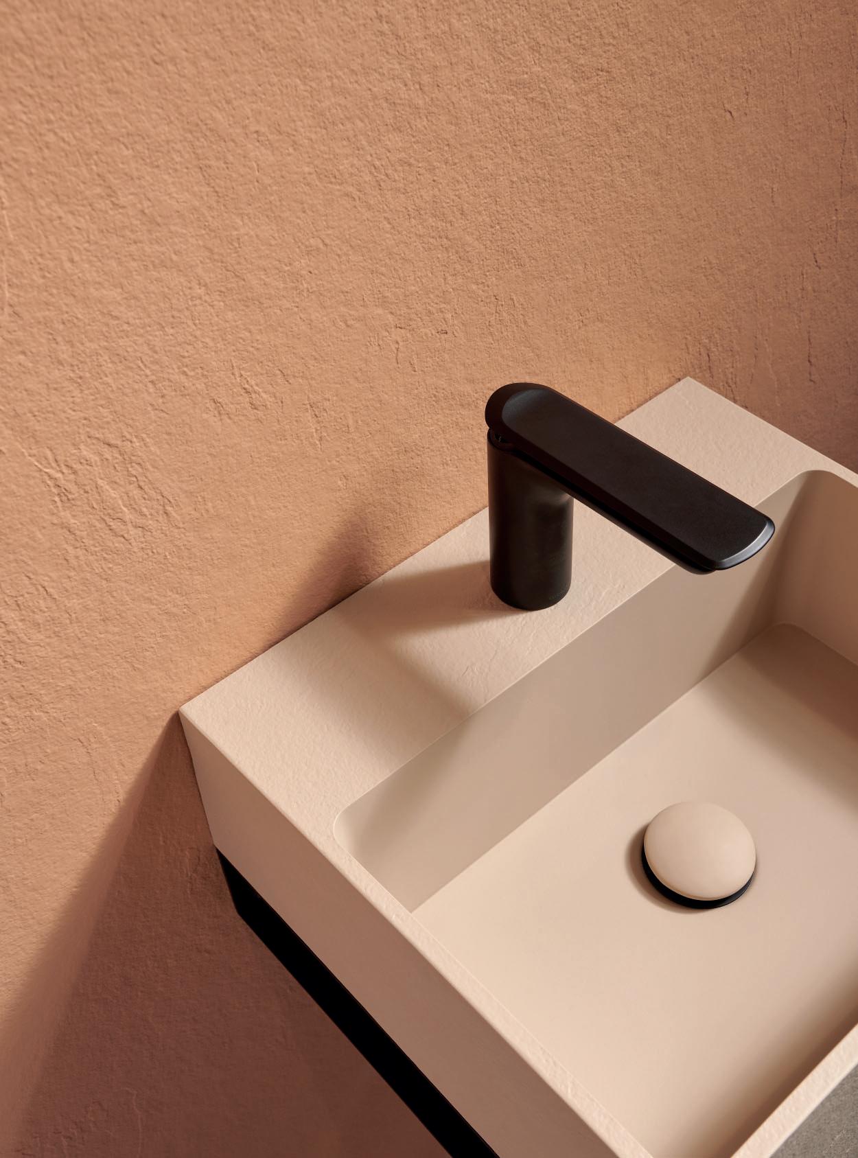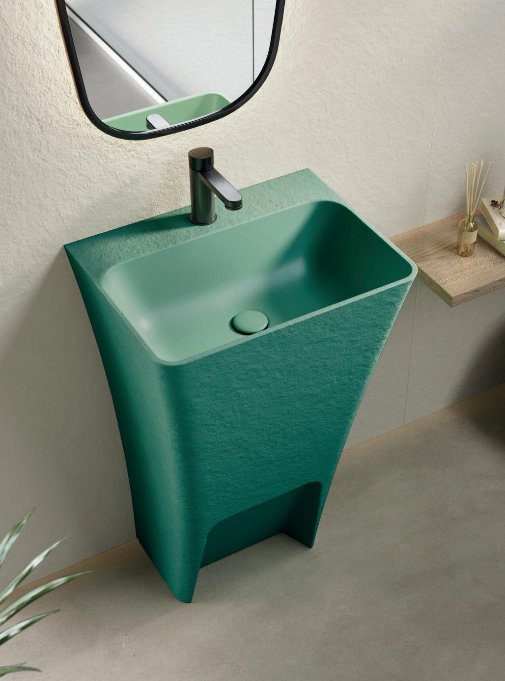 Akron is a next-gen material composed of polyurethane and high-quality mineral of varying sizes compacted to achieve a solid, strong result. The surface is treated with an acrylic polyurethane coating that fully bonds with the underlying material. Akron’s advanced formulation allows us to create products with high-definition textures, in bold shapes and a wide variety of colours for products with extraordinary design and high technical performance. Akron was also developed in an efficient and environmentally friendly way. A before and after in the world of bathrooms.