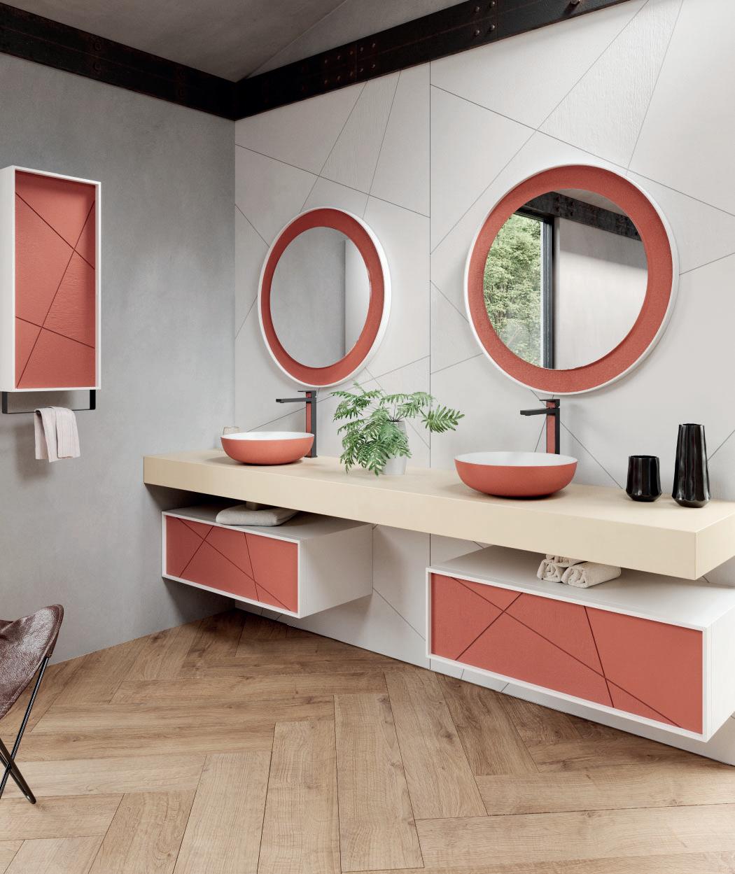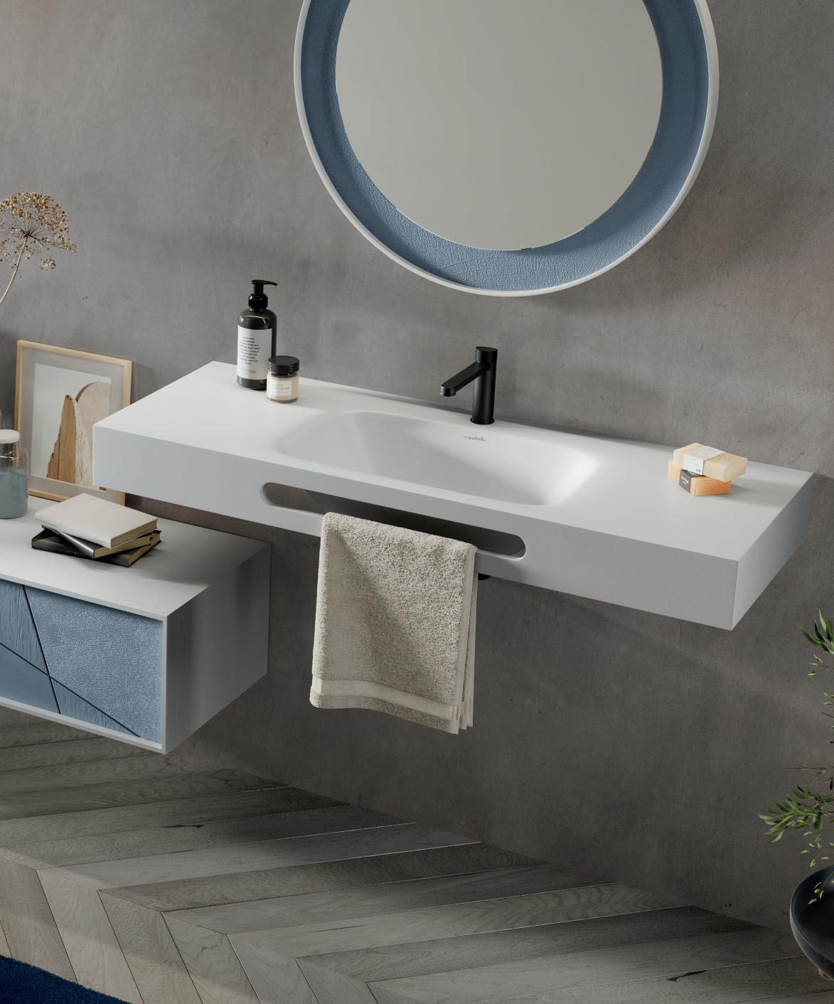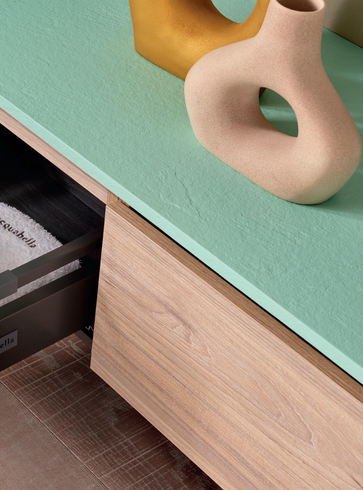 Colour is how we express emotion. Colour allows us to give free rein to our creativity and design inspiring bathroom spaces. We have four colour ranges: Standard, made up of versatile timeless shades; Naturally Made, inspired by the power of nature; Season, new this year, a careful selection of on-trend colours; and fi nally, the RAL/NCS chart with more than 2,000 colours. With Acquabella, your imagination is the limit.