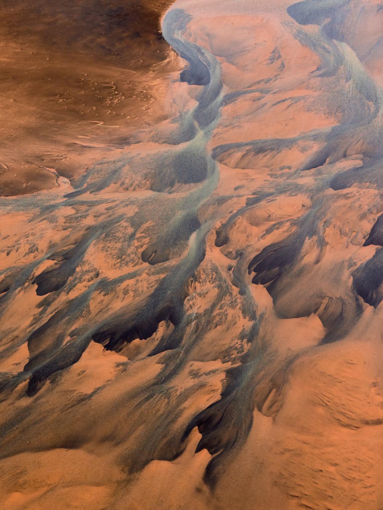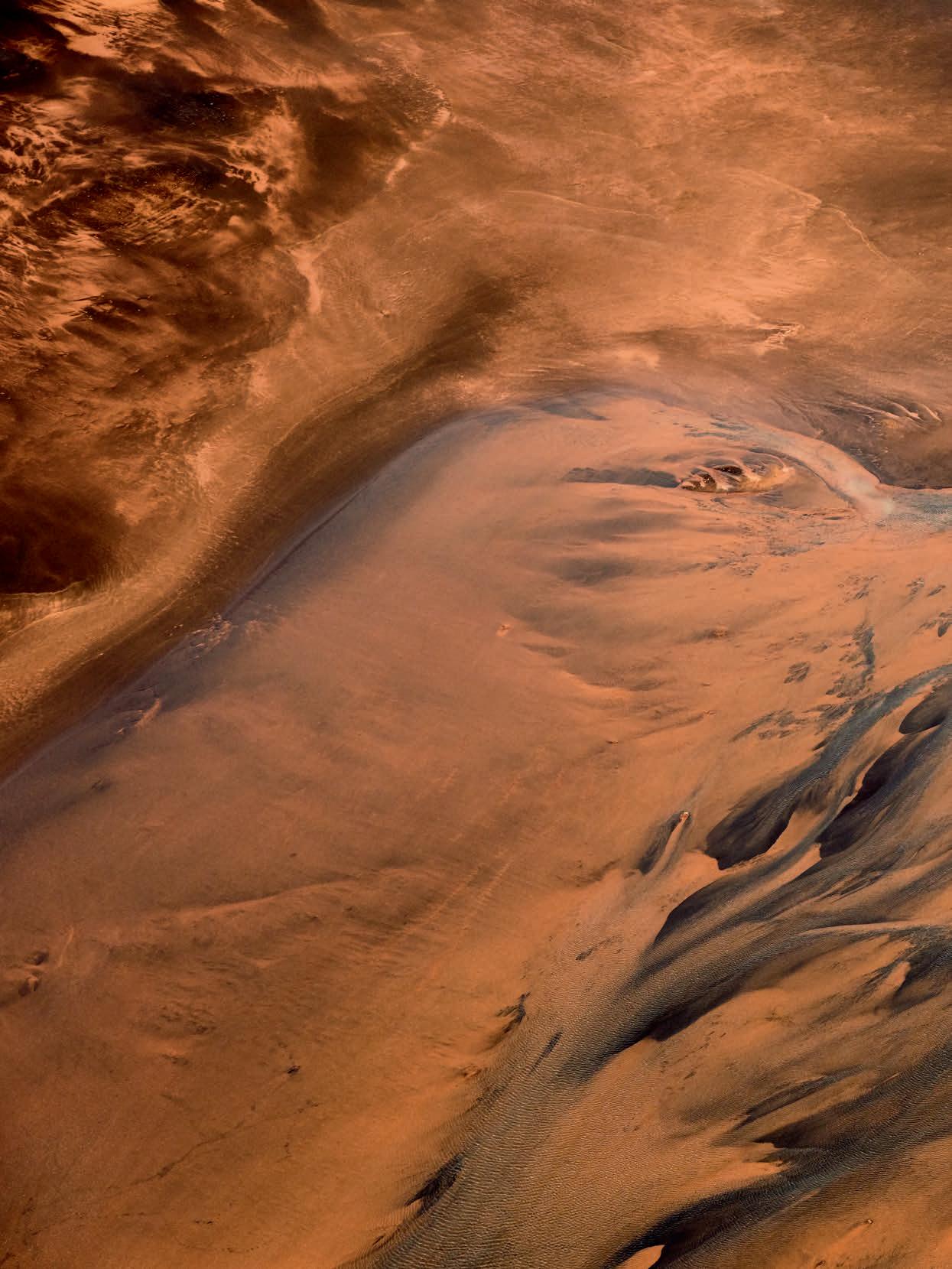 Die Fotografin Brooke Holm ist fasziniert vom Wechselspiel der Elemente, ohne das die Erde heute nicht so aussähe, wie wir sie kennen. Ihre malerischen Luftaufnahmen zeigen, wie in der Natur neue Landschaftsformationen entstehen: durch natürliche Erosionsprozesse, aber auch durch den Menschen, der seine Spuren in der Welt hinterlässt. Aus der Vogelperspektive aufgenommen und vom Fluss der Zeit und Gezeiten geprägt präsentieren sich die Landschaften auf Holms Bildern als Orte ritualisierter Ordnung.