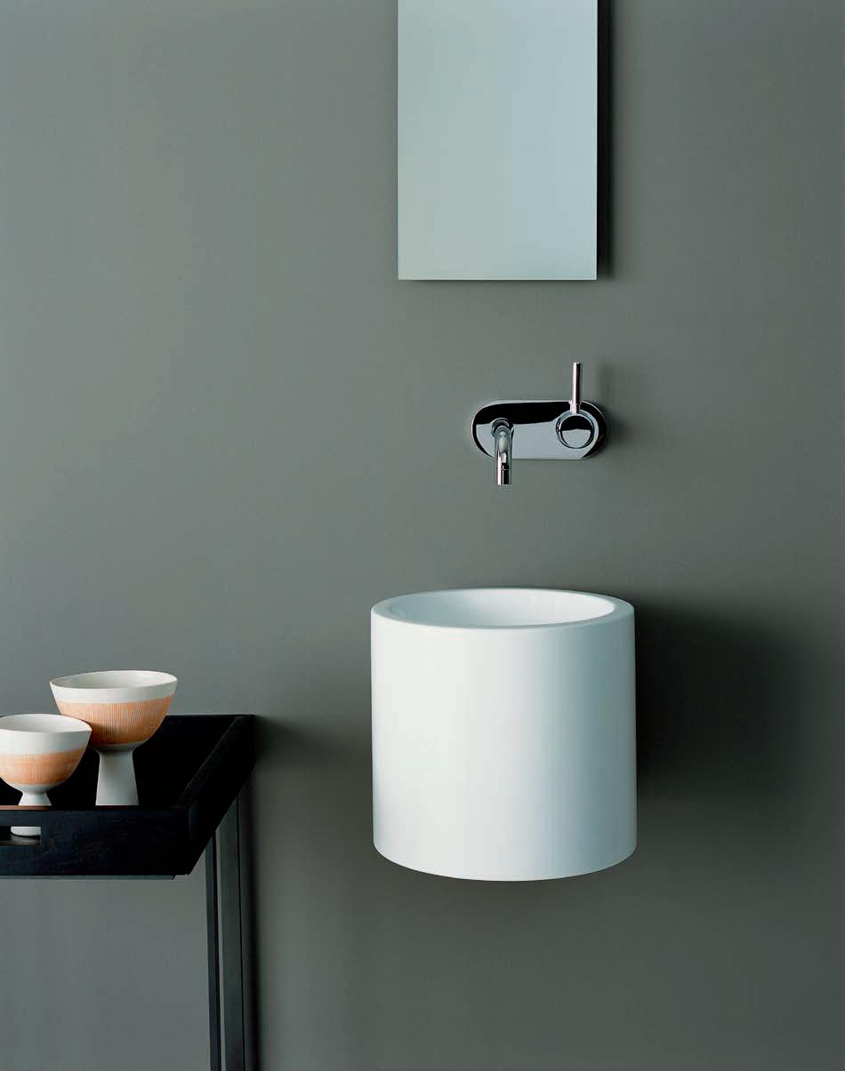 Während TERRA s mineralische Mattheit an den Sand erinnert, den man bei einem Strandspaziergang unter den Füßen fühlt, wirkt AQUA lebendig wie Wasser. Der individuelle Verlauf der Emaillierung, den der Handauftrag mit sich bringt, macht jedes Becken zum Unikat. Das faszinierende an Wasseroberflächen ist ja auch, dass sie niemals statisch, sondern in nahezu jedem Moment einzigartig sind