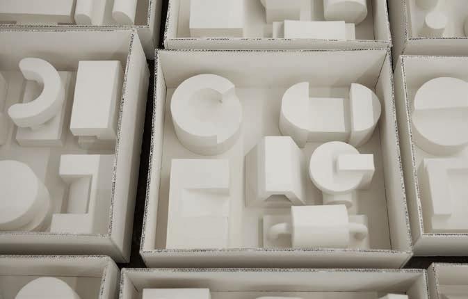 12 cardboard boxes with 6 elements Wood, cardboard, paper, white paint 20,5 x 160,5 x 252,5 cm courtesy Musée d’Art Moderne de la Ville de Paris