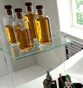 Fitted with mirrored back, these are durable, UV-bonded 10mm glass shelves that add a sleek touch to your bathroom.