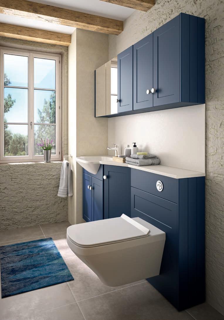 The wall hung WC unit provides cavernous storage capacity while concealing the wall hung WC support frame and cistern. Frames are tested to 60 stones weight.