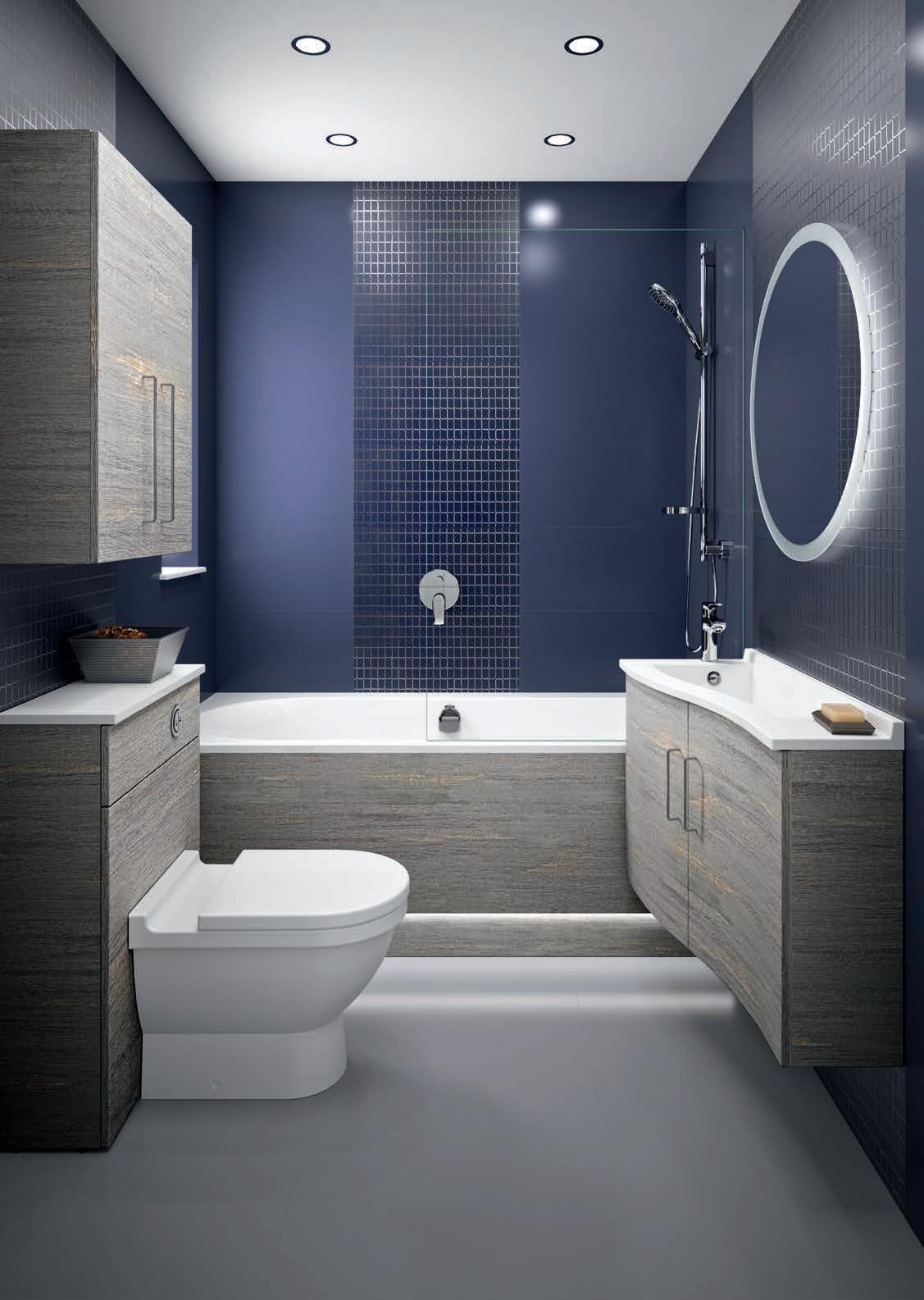 DELTA2001 unit F79 Deauville under SMO200 Gloss white basin, MIRONDEP75 illuminated mirror, WCFL2060 WC unit, H8560 wall unit + colour matched sides, KOMBATH170 Bath panel.