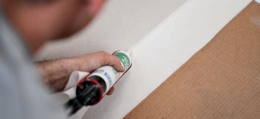 - Apply the adhesive in vertical stripes to the largest side at 20 cm intervals.
