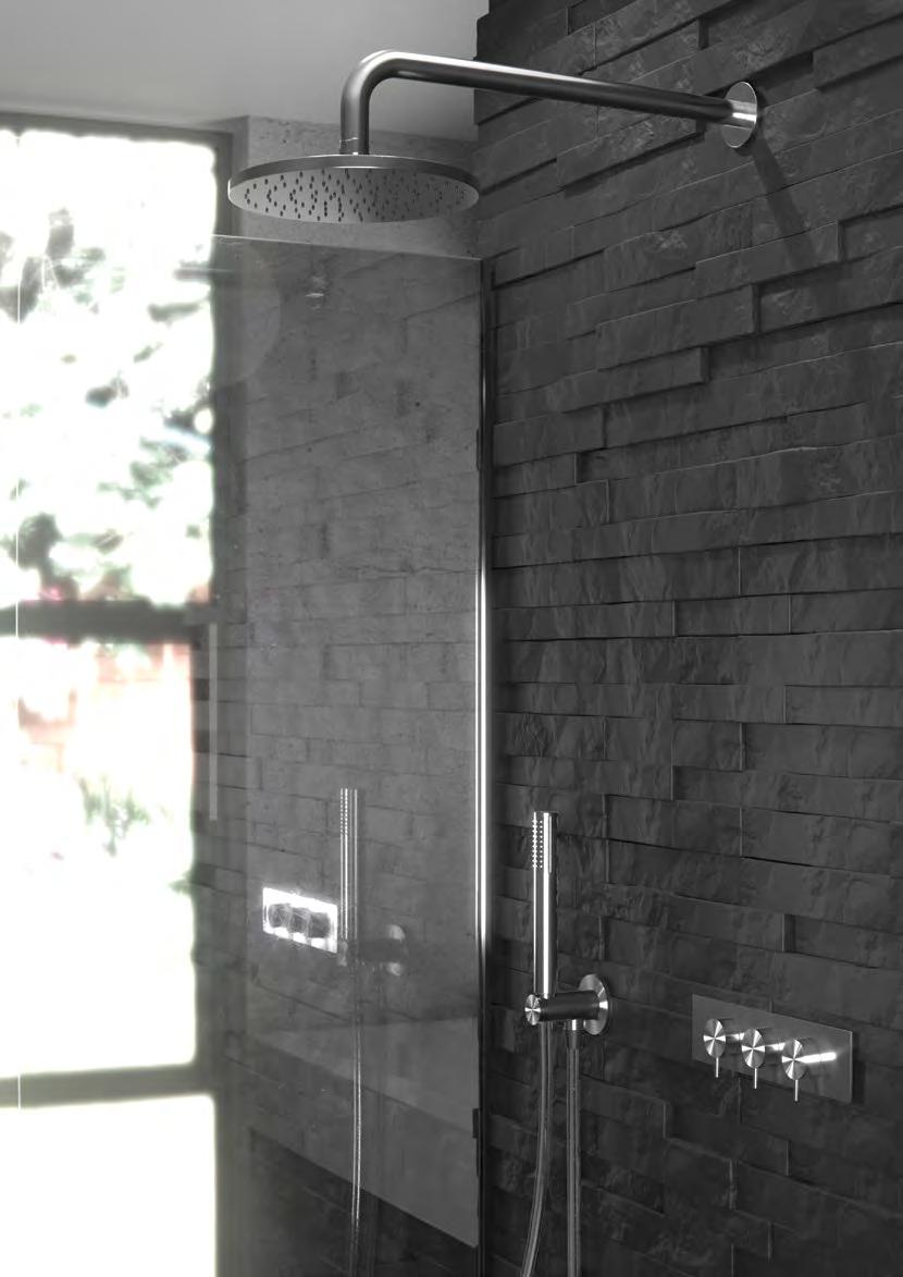 FLUHS cartridges & Thermostats. They can be mounted either portrait or landscape to suit your design layout. The external trims and handles are made from solid brass and are then finished with a tough solvent free powder coat. Available up to 3 outlets.