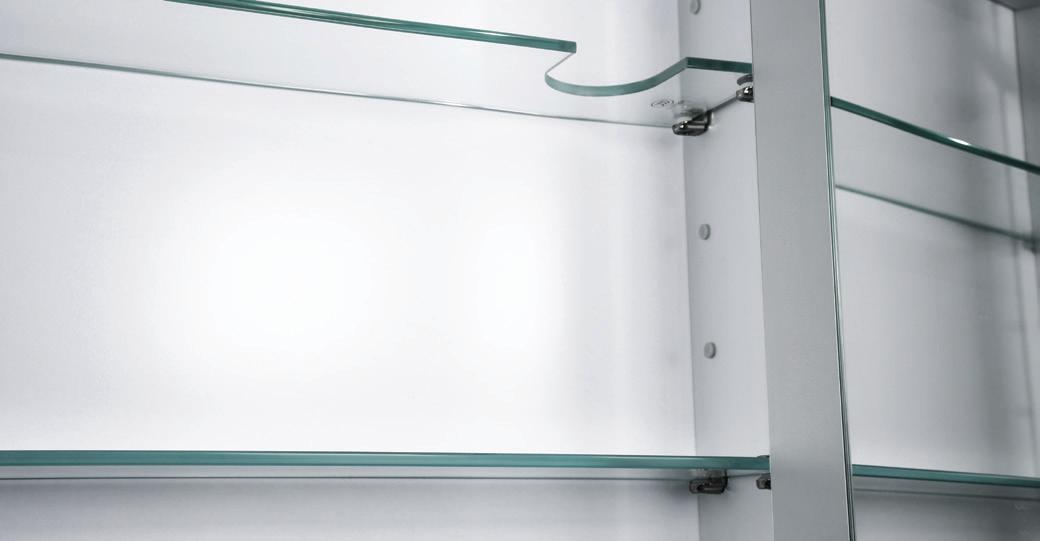 Adjustable glass shelves give you customisation options for your storage, with a neat cut-in built with your toothbrushes in mind.