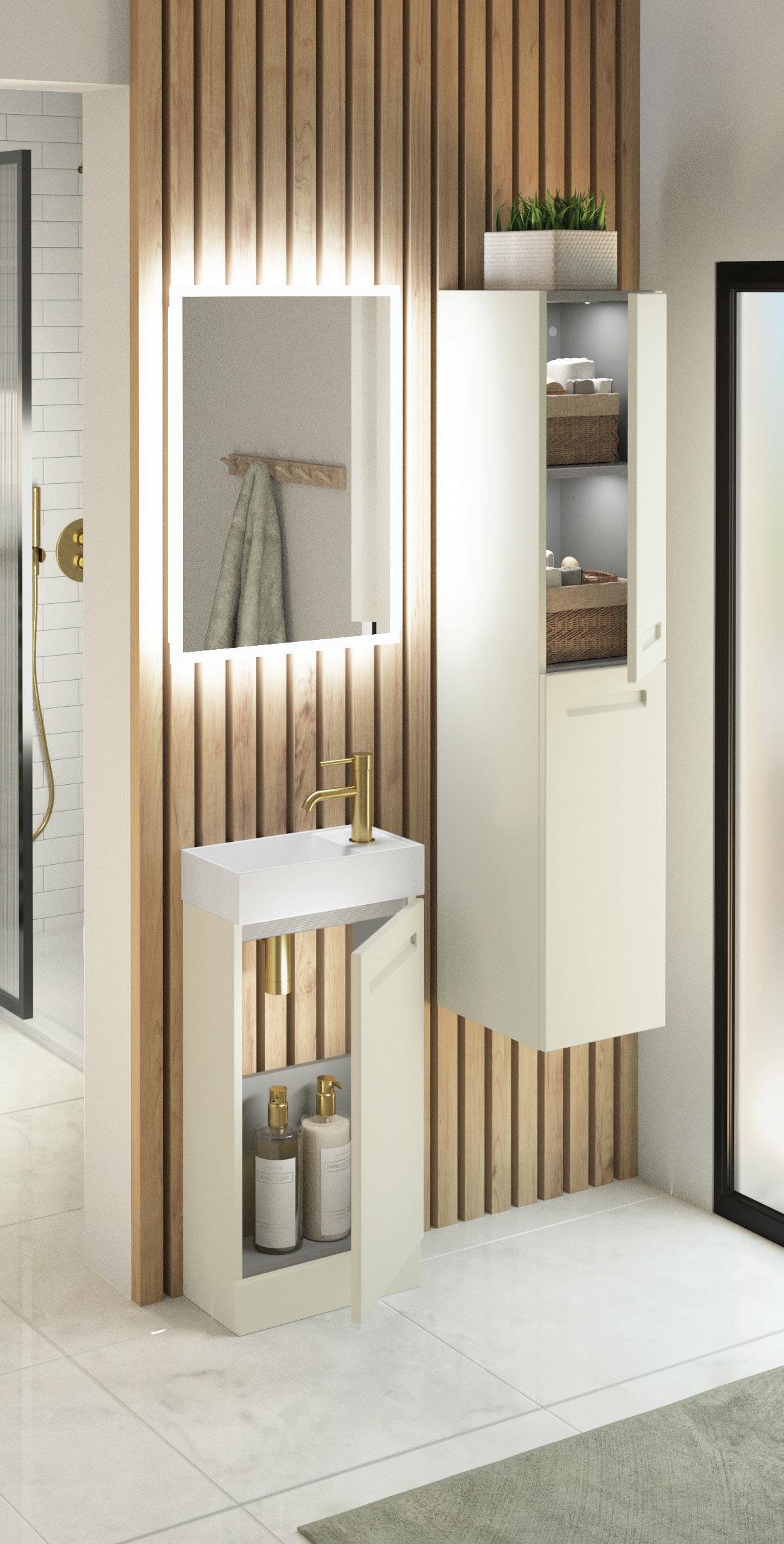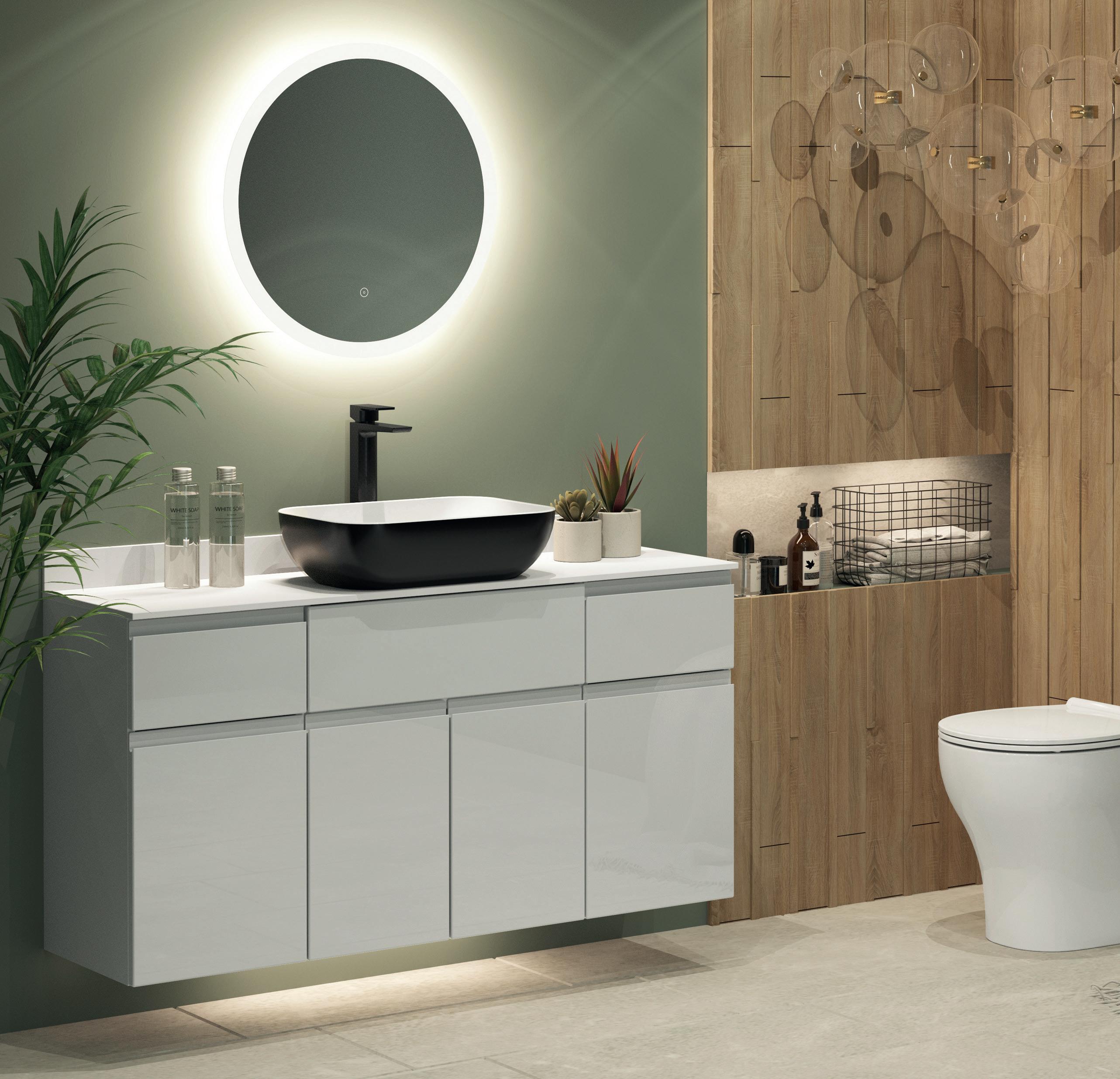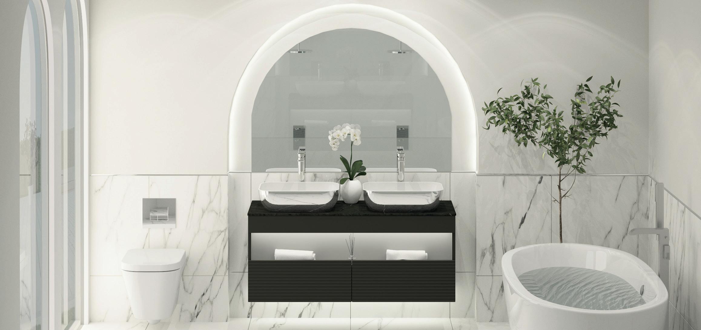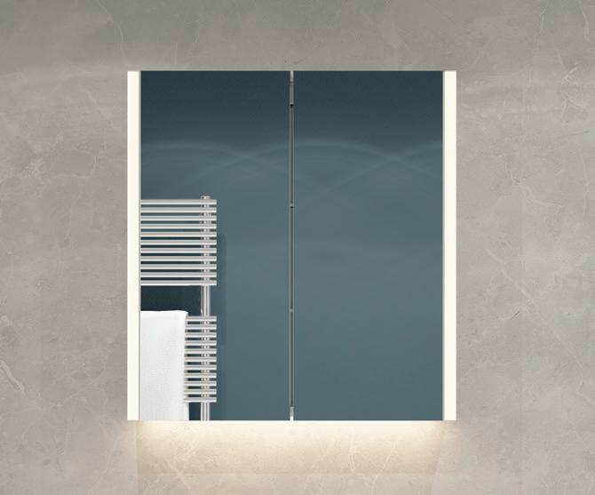 Tailored to suit the needs of the contemporary bathroom, our selection of illuminated mirrors and cabinets boasts an impressive array of cuttingedge features to elevate your daily routine. From customisable colour temperature controls to seamlessly integrated demisters ensuring crystal-clear reflections even in the steamiest environments, each detail is meticulously crafted to enhance your convenience and comfort.