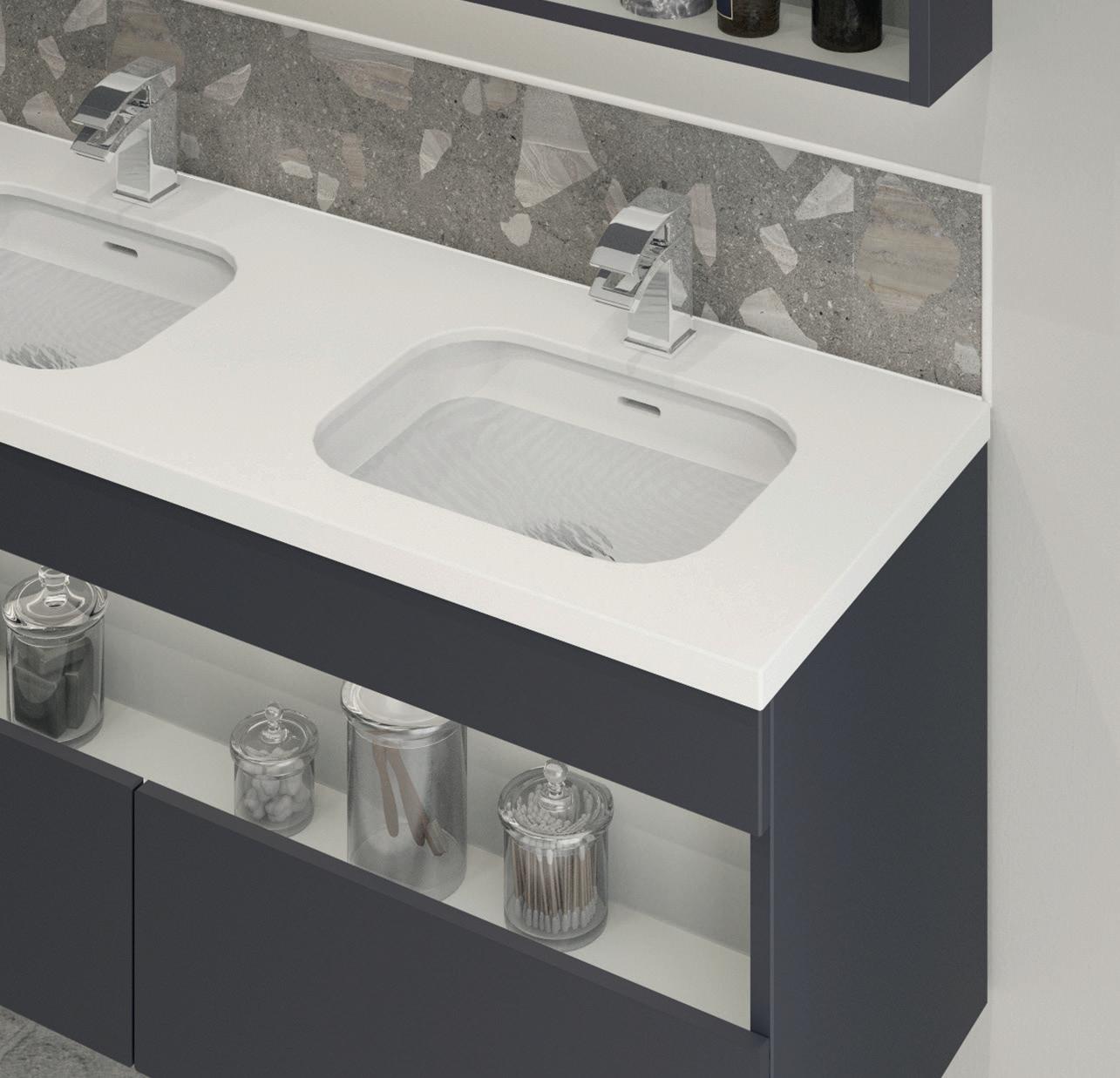 Due to the nature of materials and production processes the dimensions may vary within a tolerance of +/-2mm on furniture, +/- 2% on cast mineral basins, +/-5% on ceramic products. Cast basins are designed and guaranteed to be used with hot water up to a maximum temperature of 65ºC. This temperature must not be exceeded. The surfaces of ceramic products may contain imperfections. Sanitaryware may carry branding from relevant manufacturers.