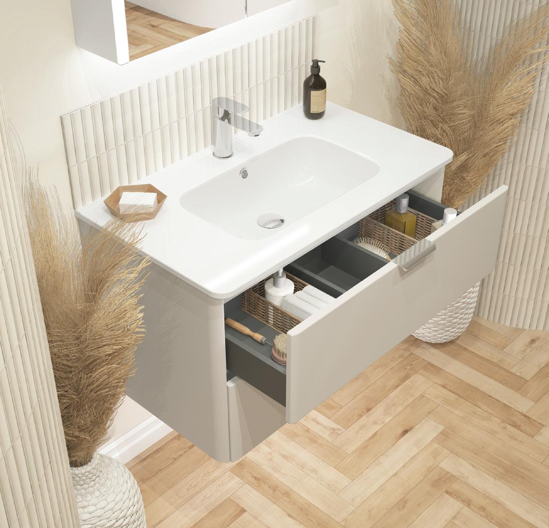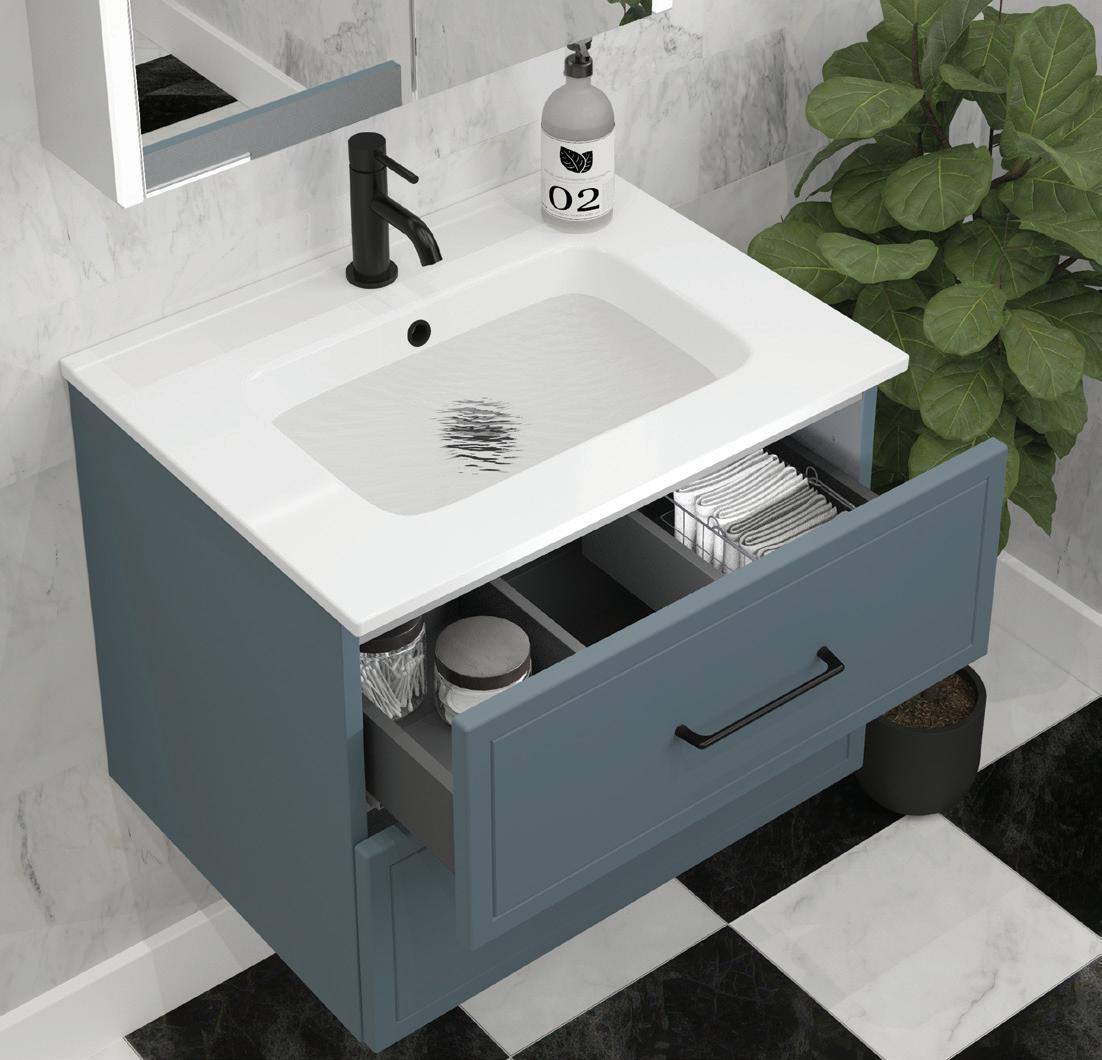 BeModern® hold design copyright and registration of design for its product ranges. BeModern® are continually striving to improve and develop their range of products. It is important, therefore, to check details before ordering as sizes and specifications may change without prior notice. Whilst every effort is made to ensure accuracy and colour, it is not always possible to obtain perfect reproduction because of the materials and printing processes used and you may find that shades, grain markings and marble effect colouring are not consistent. © BeModern® May 2024 Front cover: Evolve Double Drawer wall mounted basin units in Willow Green