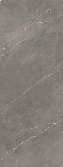 Dettaglio anta Bluna Grès con frontale costituito da un pannello in legno Grigio Antracite di spessore 16 mm su cui è applicata una lastra in grès Pietra Piasentina Grigio Fiammato, spessore 6 mm. Particolare lavello a doppio invaso, balconcino in gres H 8 cm e boiserie double.
