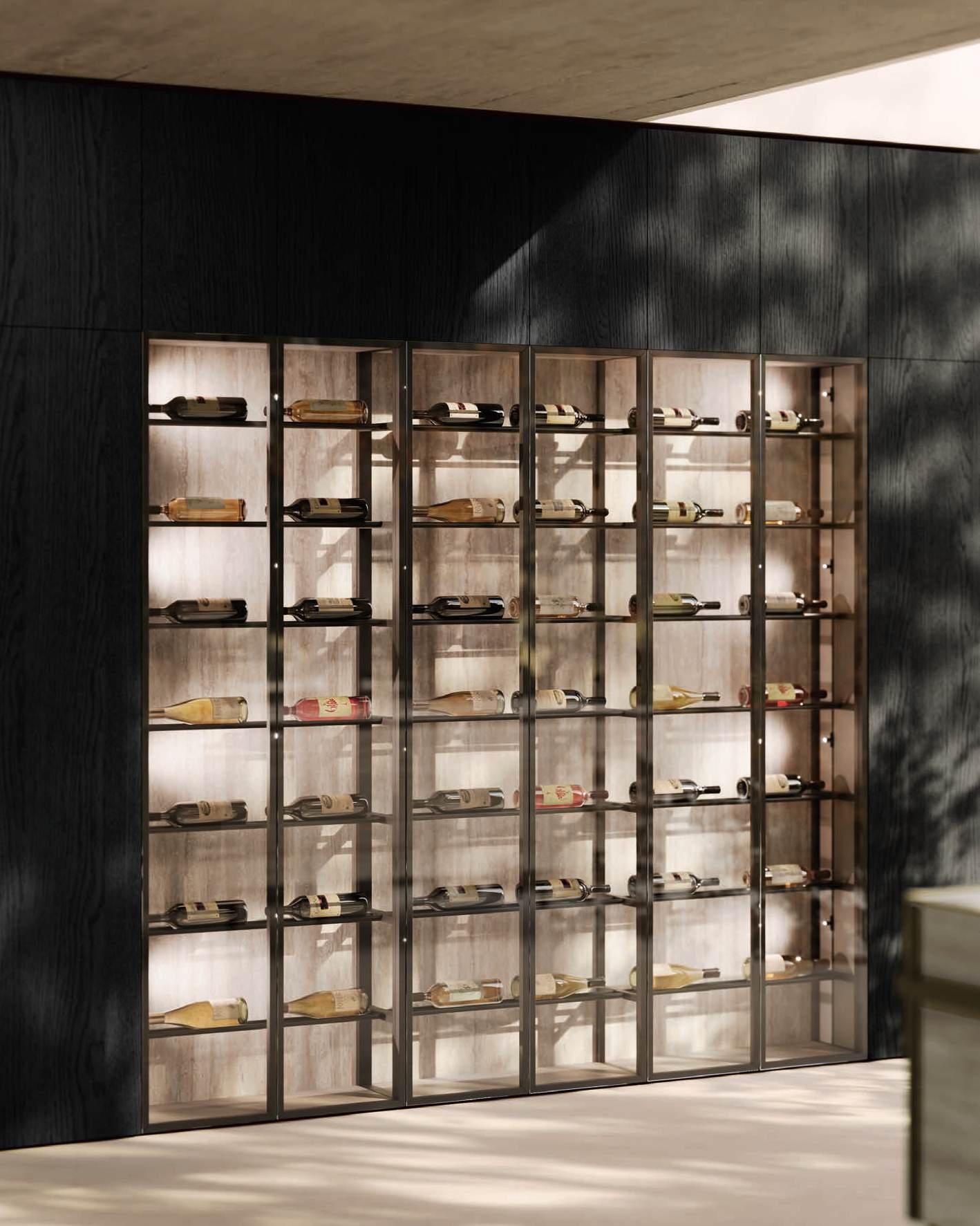 LED lighting outlines each shelf, which has been specially designed for the storage of bottles and glasses.