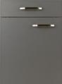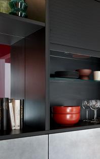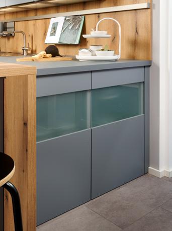 The handle-free programme with an ergonomically designed floor unit measuring 78 cm allows customers to work at a standard height of 89.7 cm to 96 cm. Tall cupboards can be optionally designed with more horizontal or vertical handles.