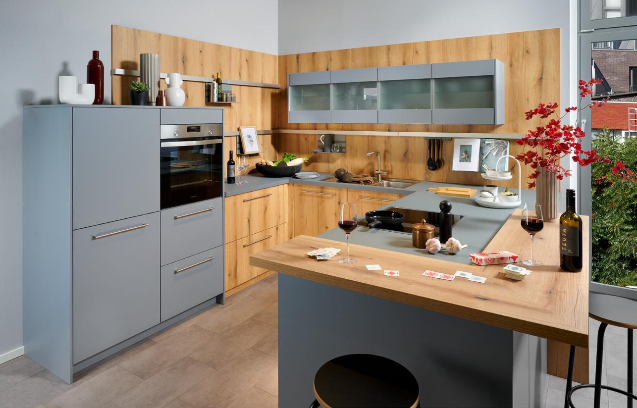 Mit dem neuen Programm FLORIDA MULTICOLOUR in hochwertiger, matter Mehrschichtlackierung haben Sie jetzt die Möglichkeit in allen RAL-/NCS-Farbtönen die Küche individuell nach Ihrem Geschmack zu gestalten. Durch die Kombination mit Echtholzfronten in Eiche Natur erhält die Küchenplanung eine wohnliche Lebendigkeit und passt außerdem durch das Upcycling des Altholzes bestens zum Thema Nachhaltigkeit.