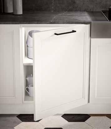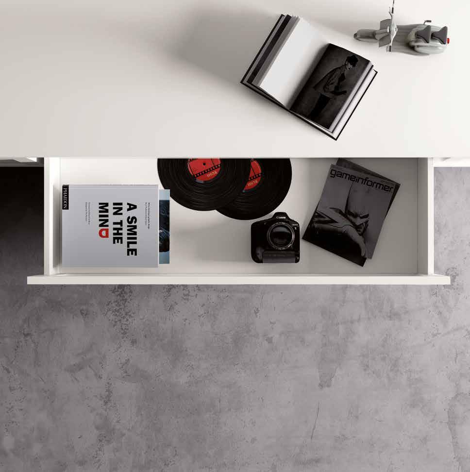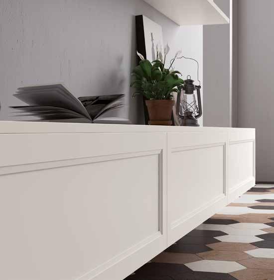 El sistema de apertura del colgante aumenta la capacidad. No necesita tirador. Con este almacenamiento de los muebles bajos es todo comodidad.