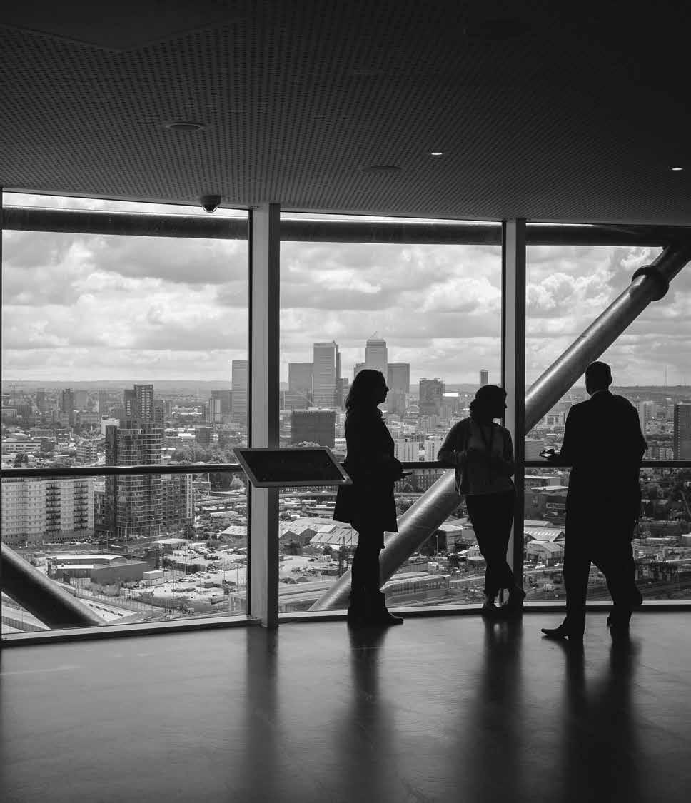 nelle colonne a servizio della zona pranzo, arricchite da ripiani in vetro con illuminazione integrata a LED.