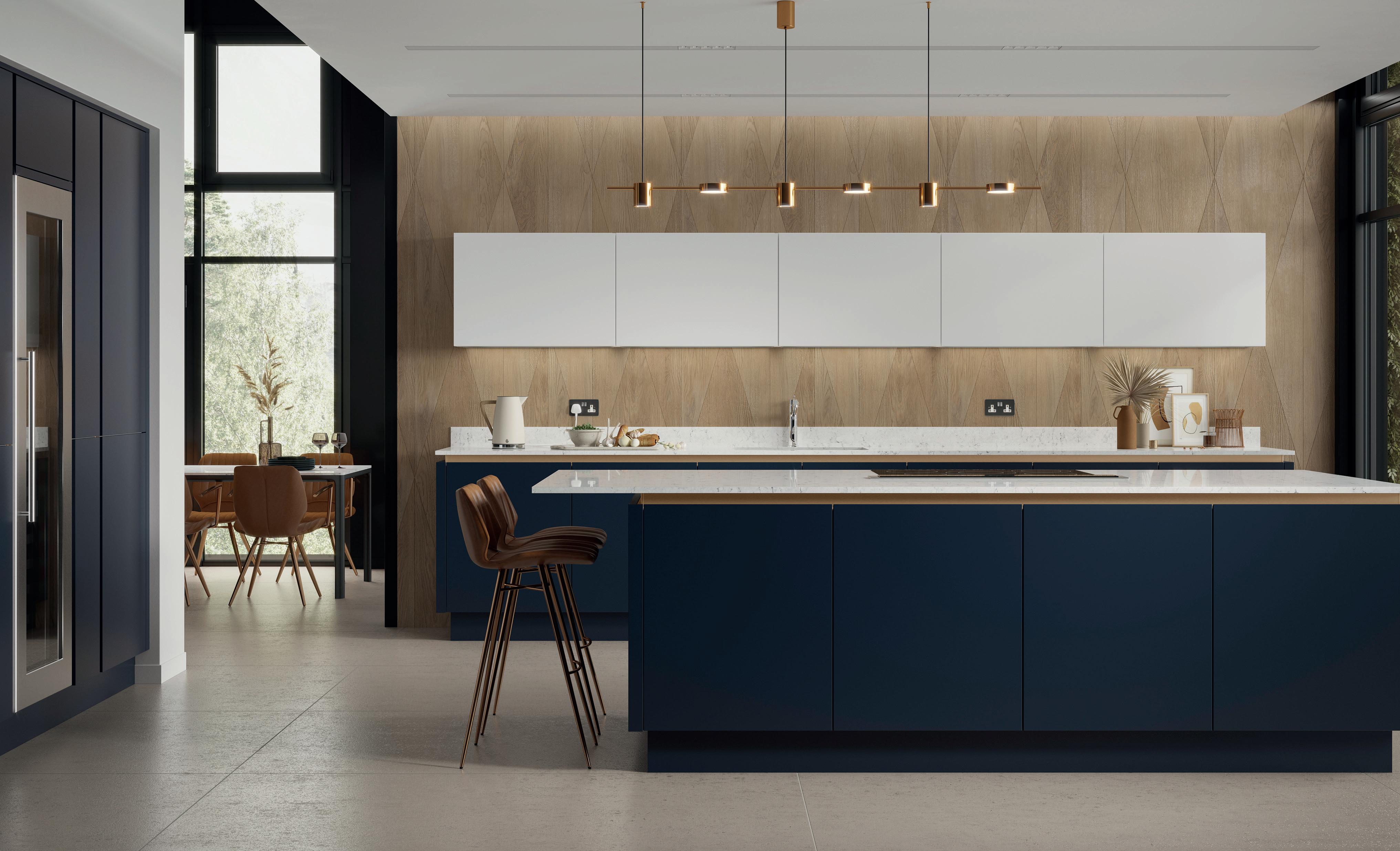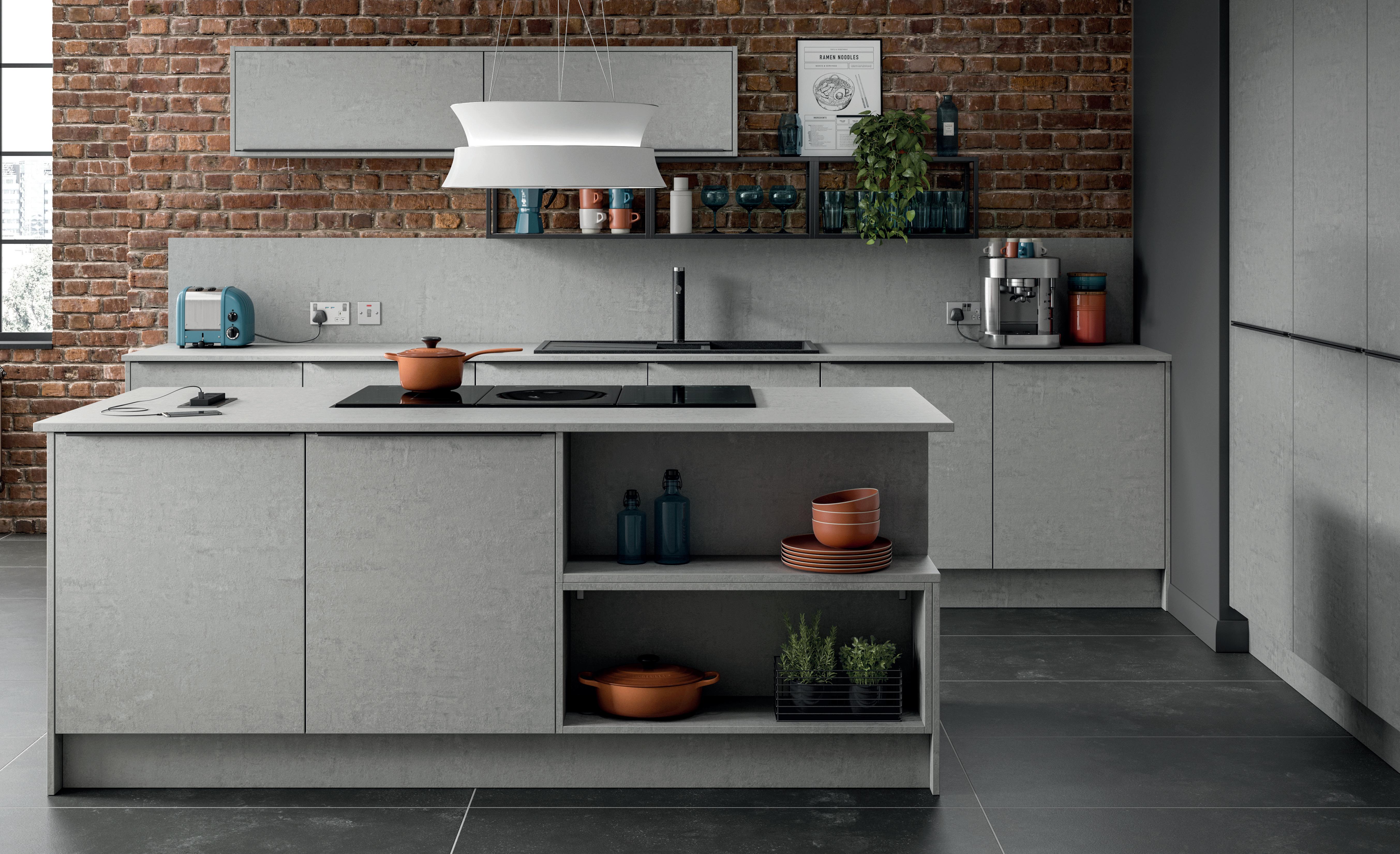 Our contemporary range of kitchens can create a unique distinctive look, from sleek super-matt kitchens that include the latest robust antifingerprint surface technology, to Alta high gloss reflective designs that can make a space seem bigger and brighter. Our collection also includes a full paint to order colour palette to pick from as well as the latest trend designs such as elegant Dark Walnut, Riviera Oak and industrial style Concrete & Dark Stone.