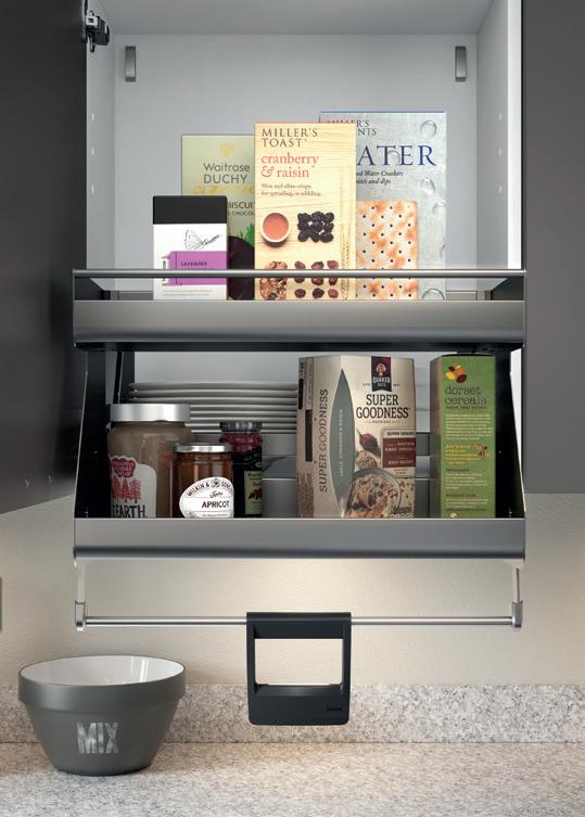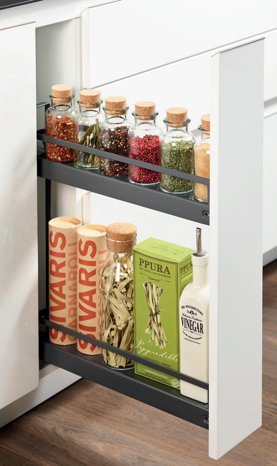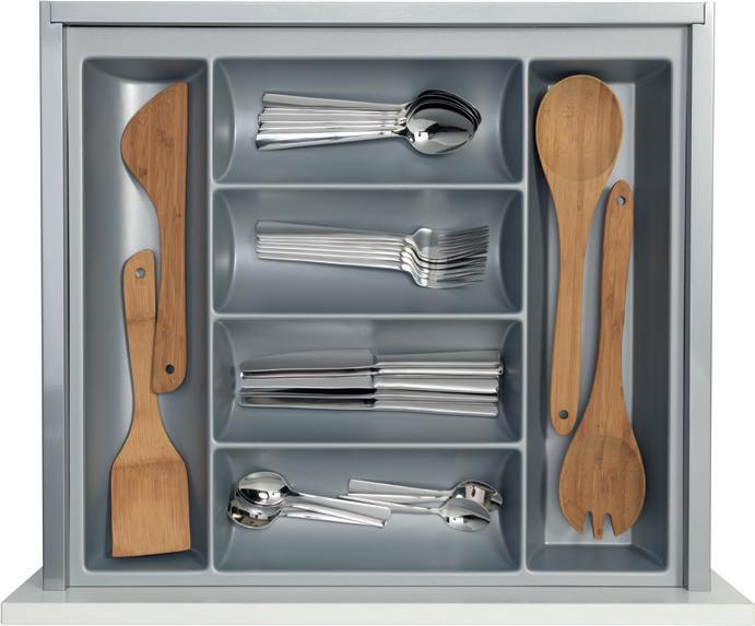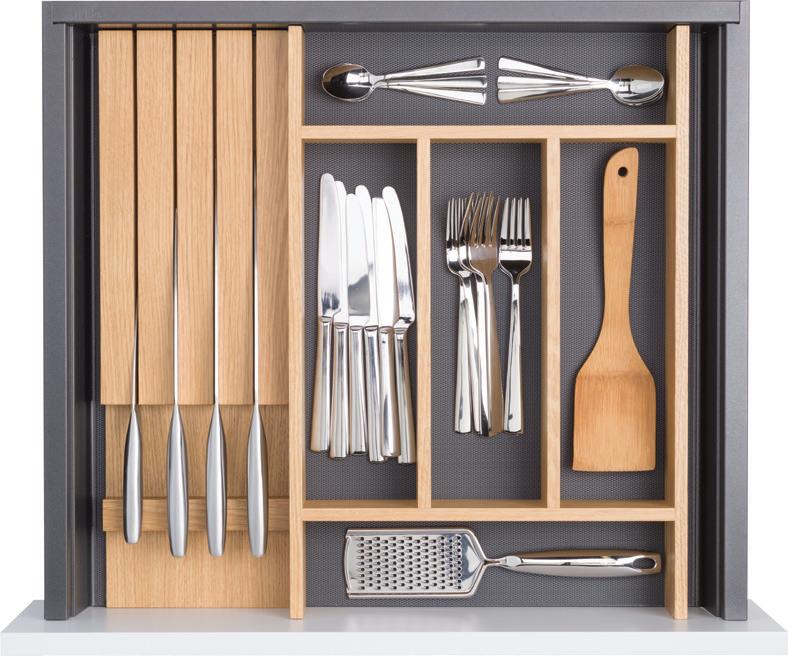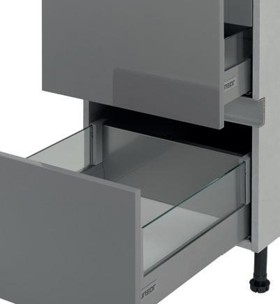 Atira metal drawer box with full extension and soft-closing action, available in a choice of Anthracite or Silver (see Fig. D) Pan drawers have glass sides * (See Fig E *Oak drawer box available as upgrade on Classic ranges (see Fig. G)